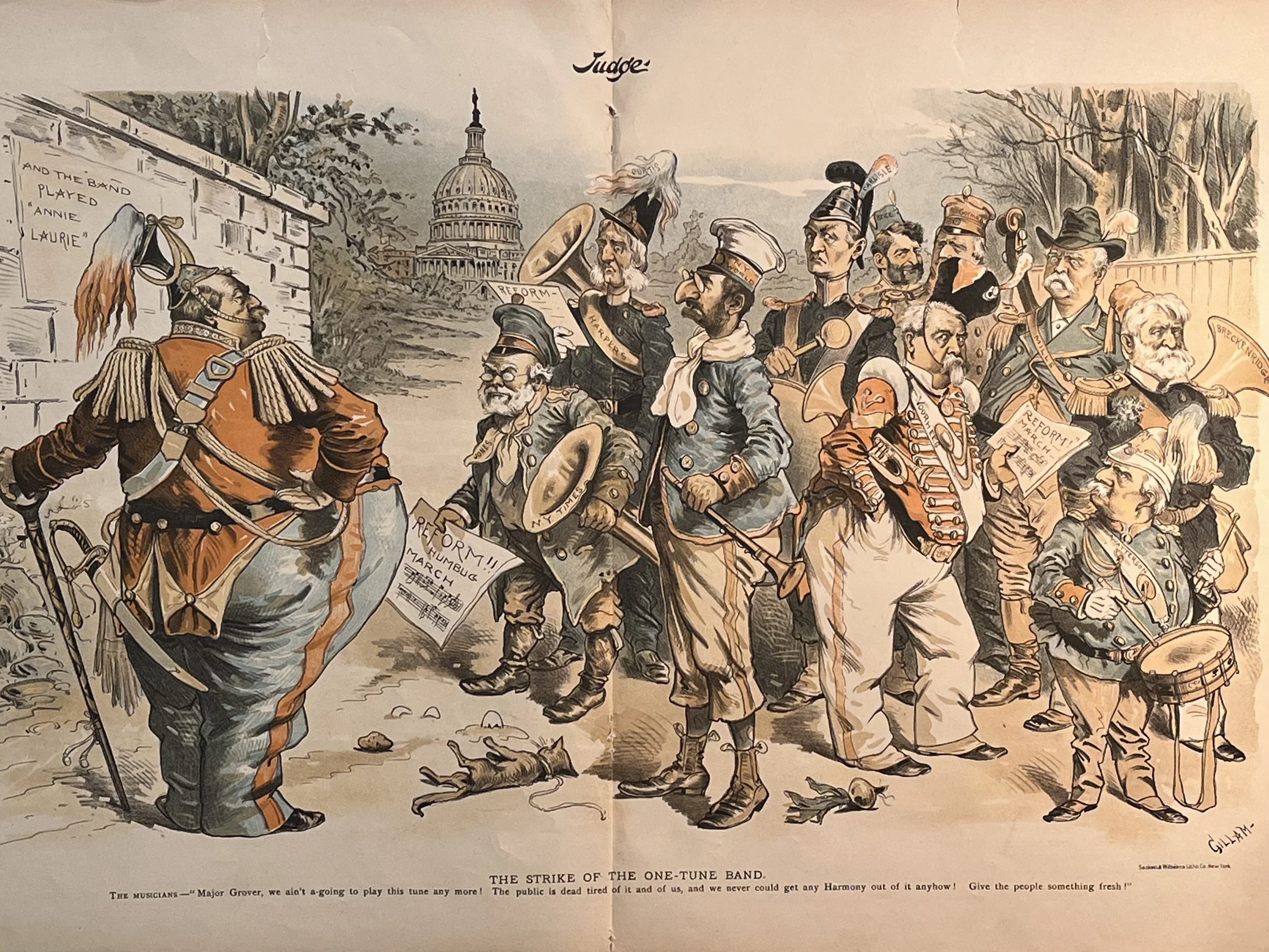 Bernhard Gillam, born in England and raised in the United States from 1866 onward, emerged as one of the sharpest political cartoonists of late-nineteenth-century America. After early work for Leslie’s Weekly and the New York Graphic, he moved to Harper’s Weekly and then joined Puck in 1881, quickly becoming a leading voice in the magazine’s visual campaign against political fraud and party machines. Trained in the high craft of chromolithographic satire, Gillam worked in the same fast-moving world as Thomas Nast while developing a style that foregrounded clarity, caricature, and public accountability.