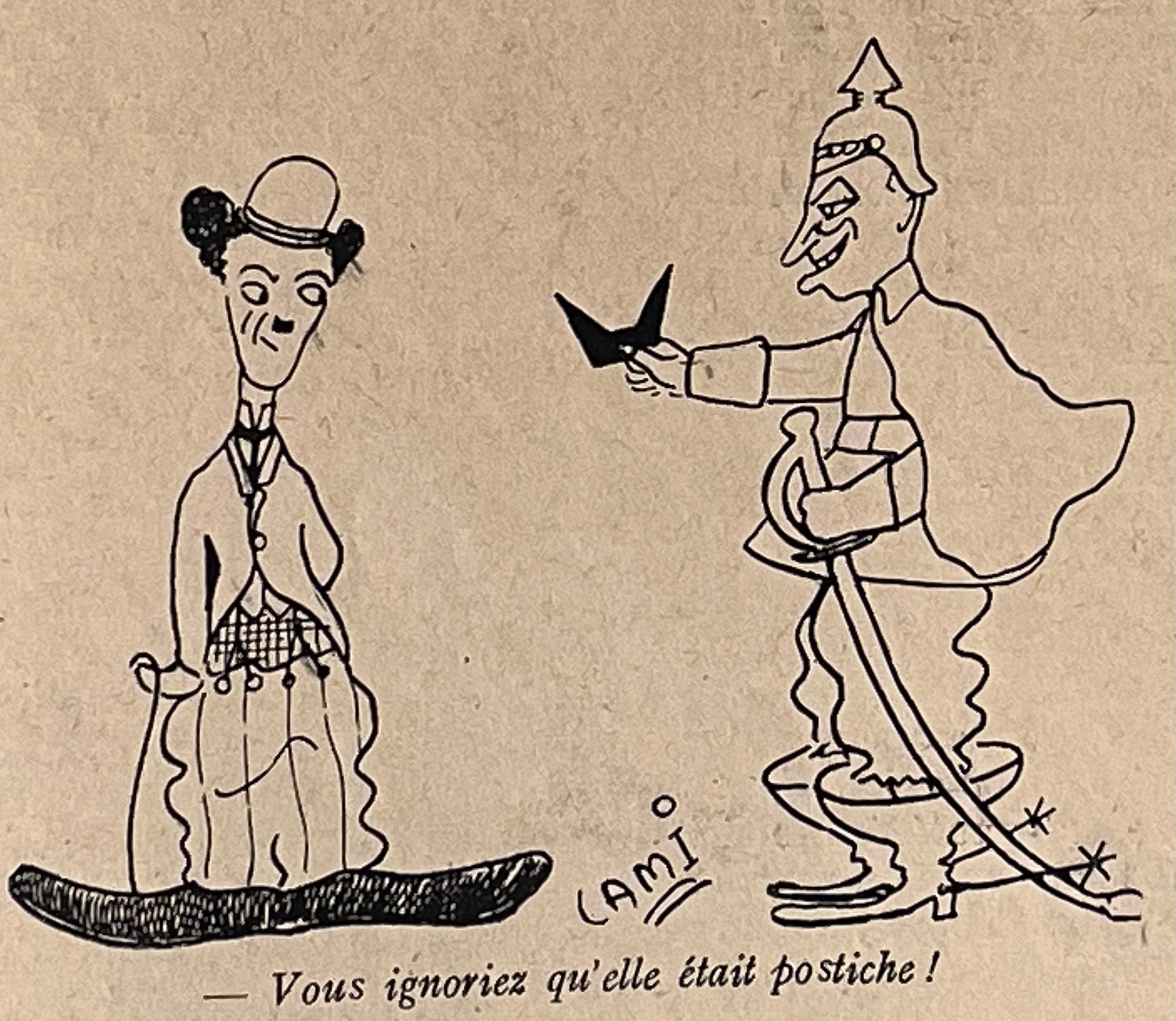This sensibility is evident in his contributions to La Baïonnette, including the 22 March 1917 issue devoted to “Charlot,” the French name for Charlie Chaplin’s Tramp character. In that number, Cami transforms Charlot into a wandering witness to wartime absurdity, using the figure to reveal the contradictions of military life, improvised authority, and the strain of maintaining levity in a moment of national crisis.