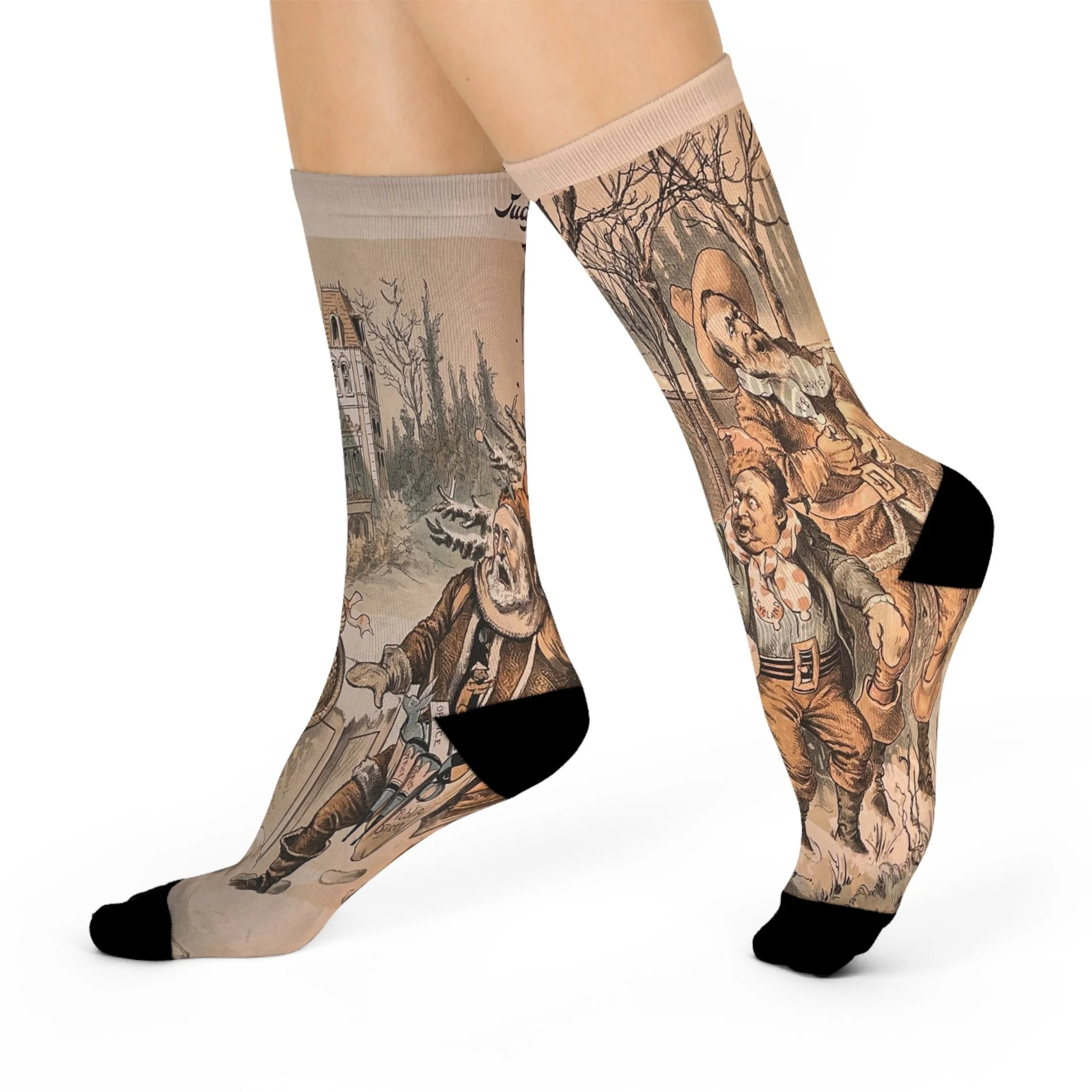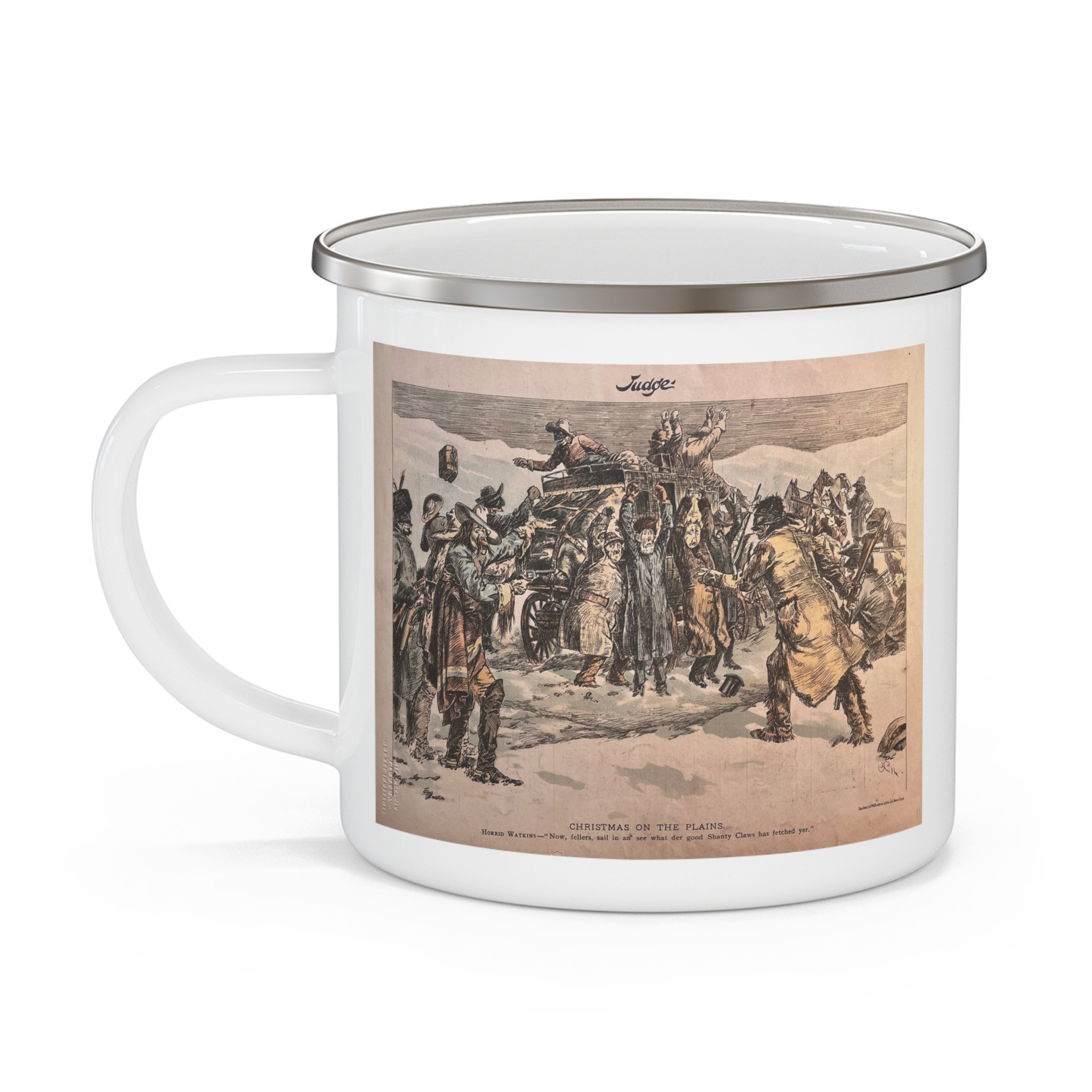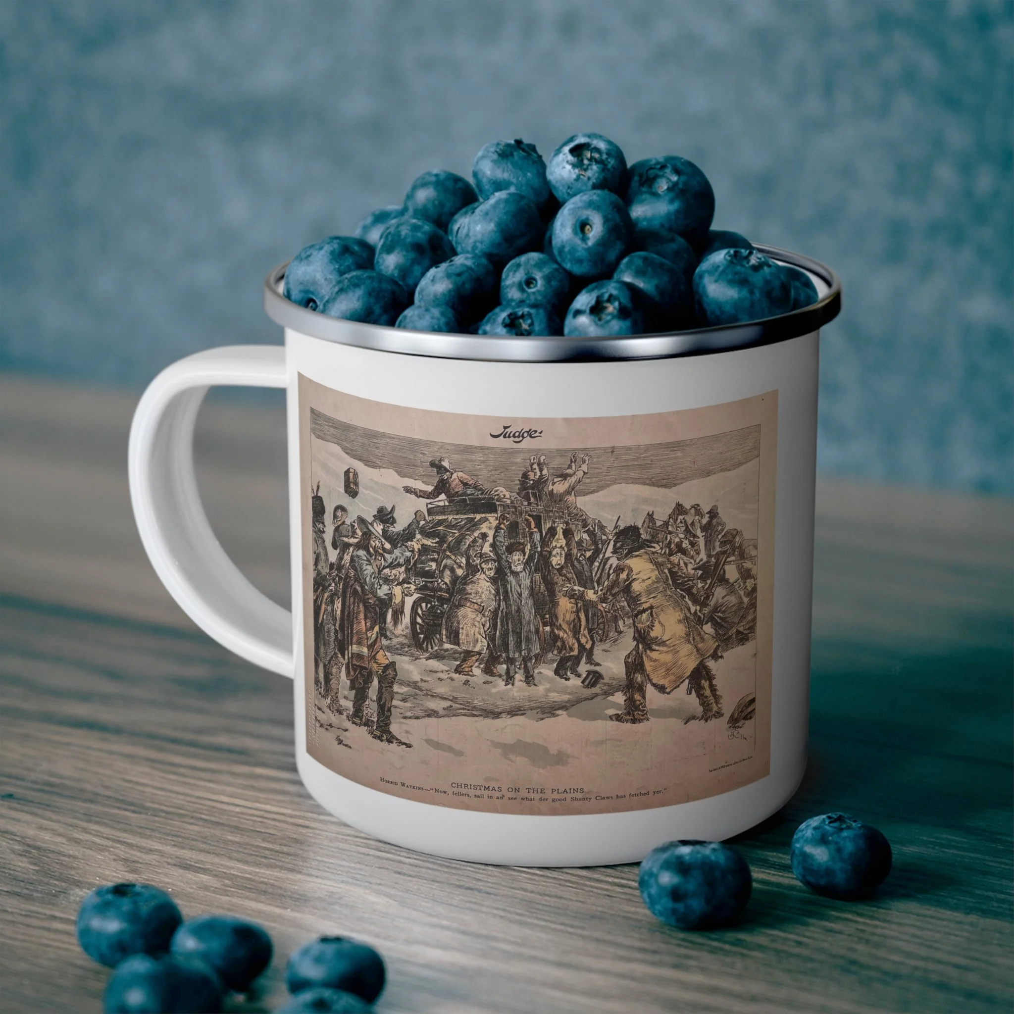This 1889 Judge Magazine illustration shows a stagecoach halted on the snowy plains by a rowdy band of armed frontiersmen who treat intimidation as holiday cheer. The caption’s joke—calling the gang “Shanty Claws”—was Judge’s way of mocking America’s romanticized Wild West mythos, where mob rule and gun swagger were dressed up as folklore. Viewed today, the scene resonates uncomfortably: groups who imagine themselves as patriots while using fear and force to control others. Judge was warning that violence wrapped in cultural costume is still violence—and still a threat to the common good.