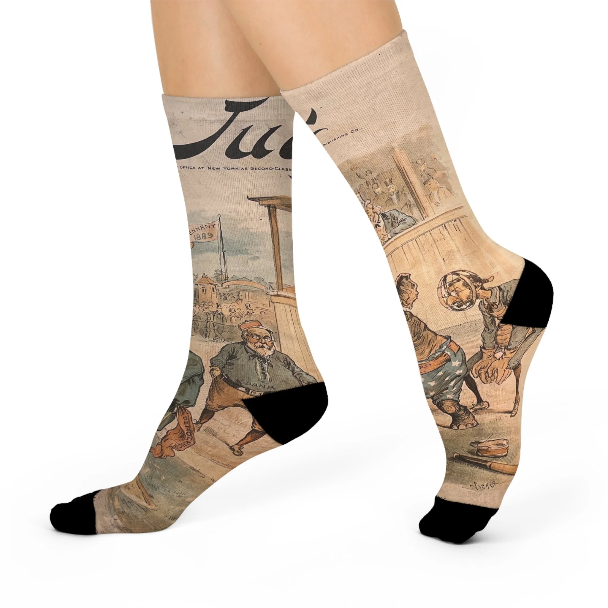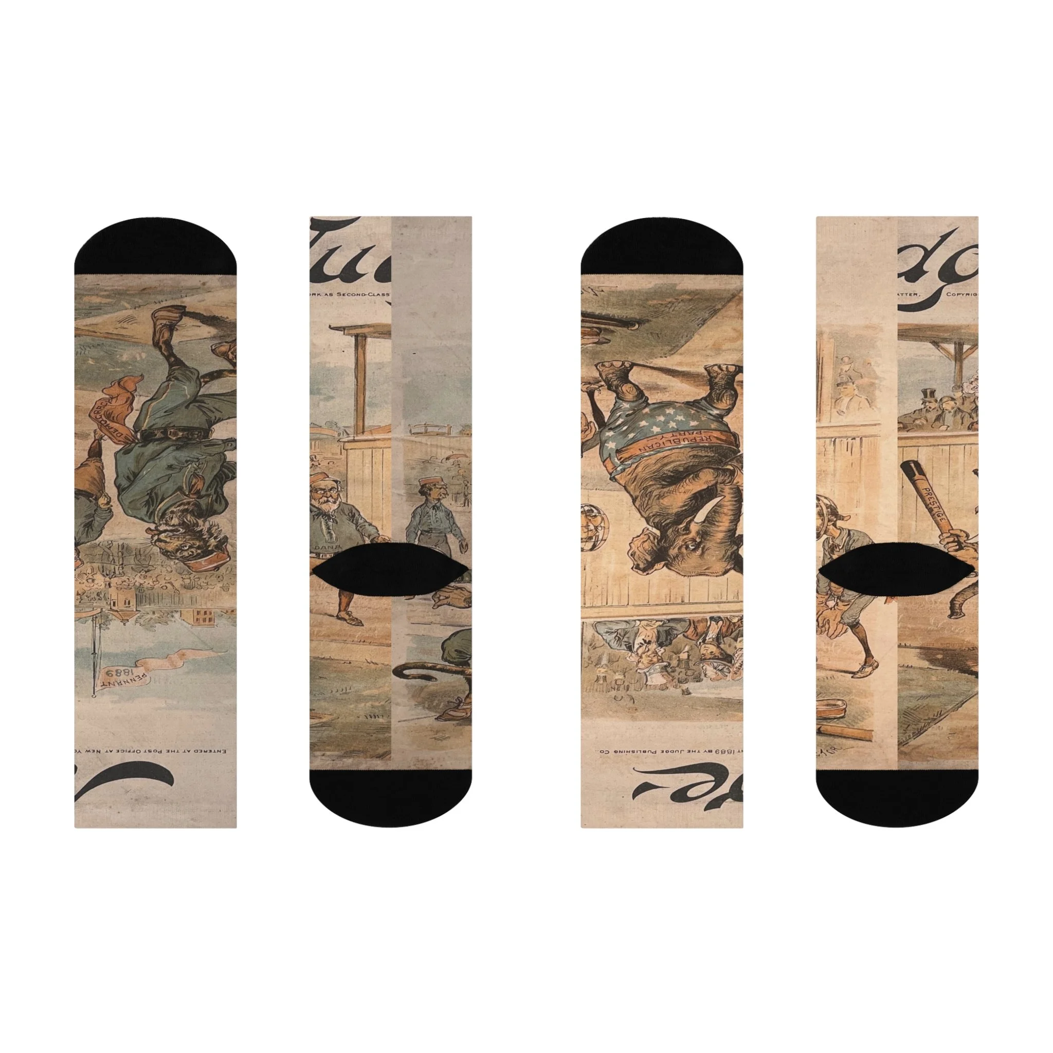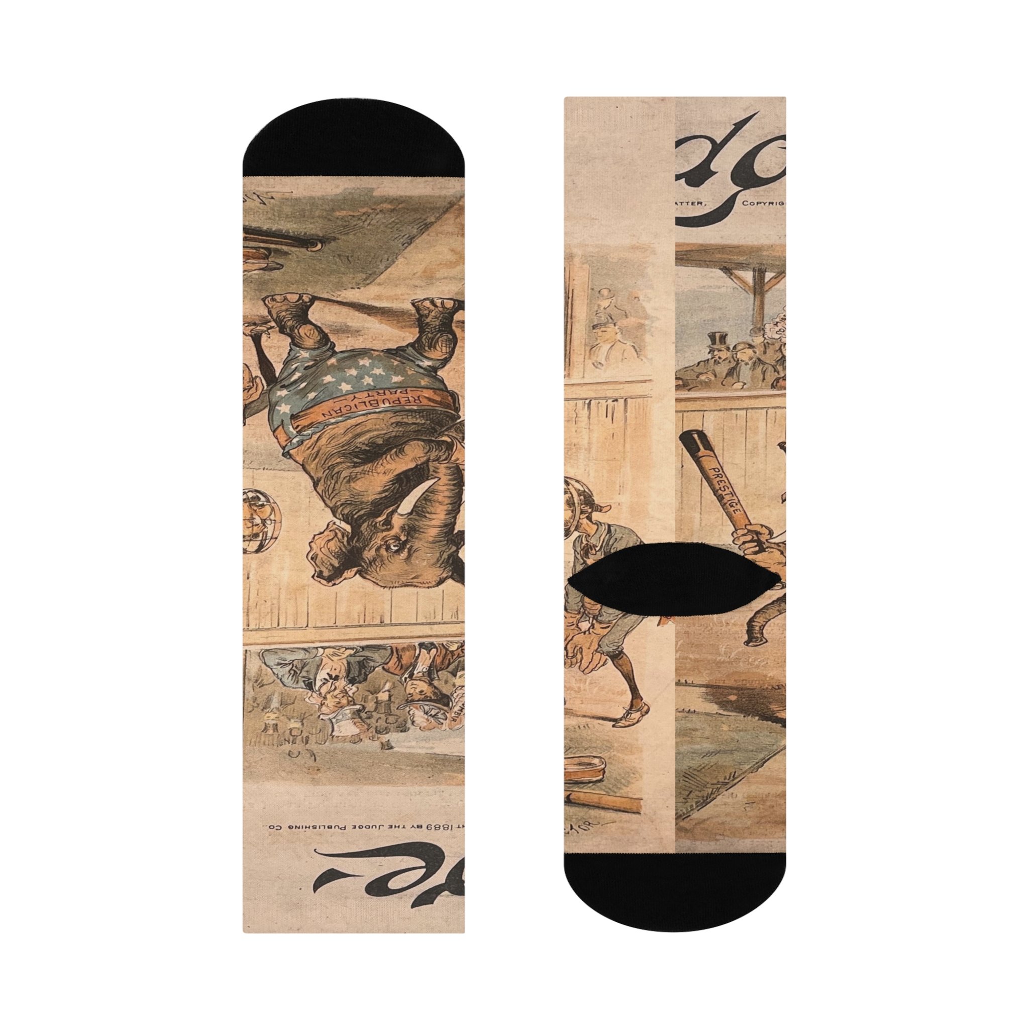 This 1889 Judge magazine cover turns the autumn elections into a baseball showdown—one where the Republican Party can’t keep its head in the game. The elephant at the plate, dressed in full GOP uniform, is surrounded by opponents ready to capitalize on every mistake, while the caption warns that the party is playing so carelessly it risks being “struck out.” It’s classic Gilded Age political satire: sharp, funny, and brutally honest about how complacency and corruption undermine a democracy. Over a century later, the message still holds—authoritarian movements thrive when the party in power stops playing by the rules and starts taking voters for granted.