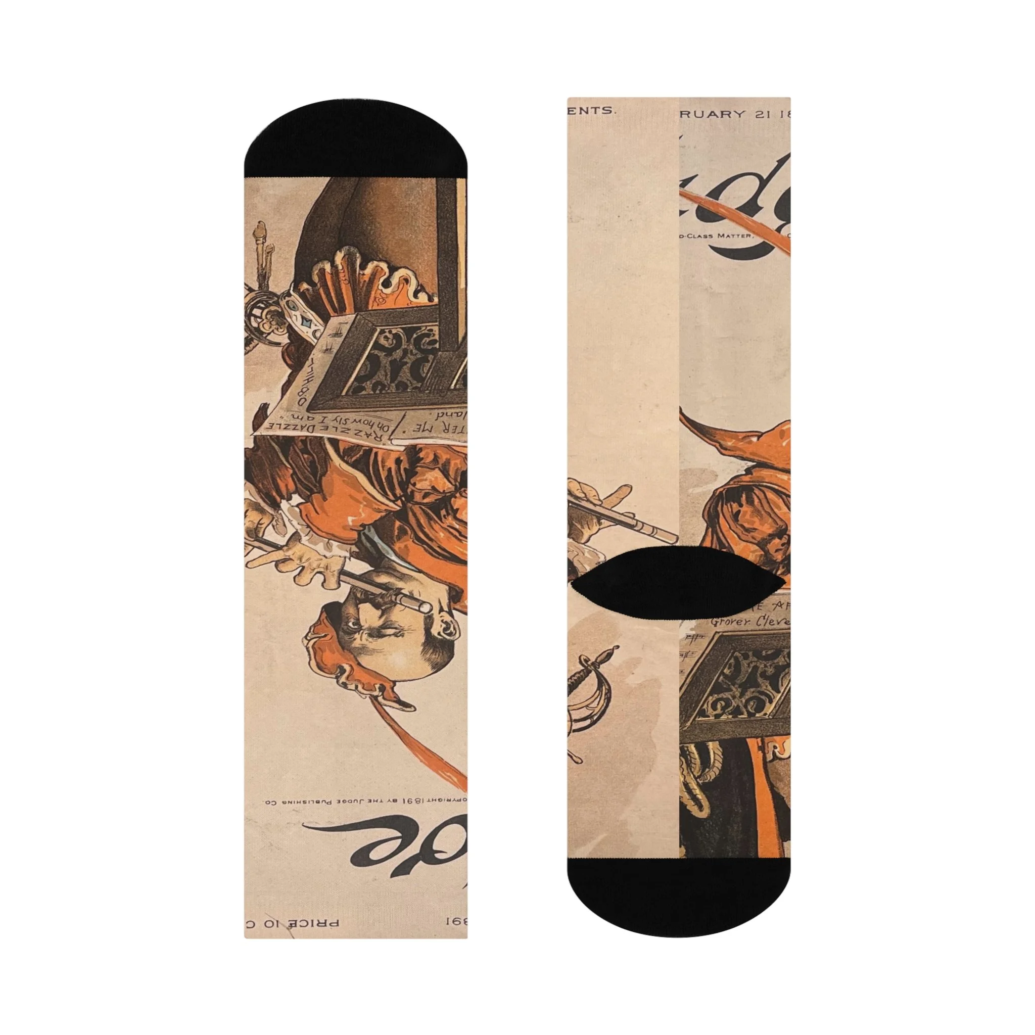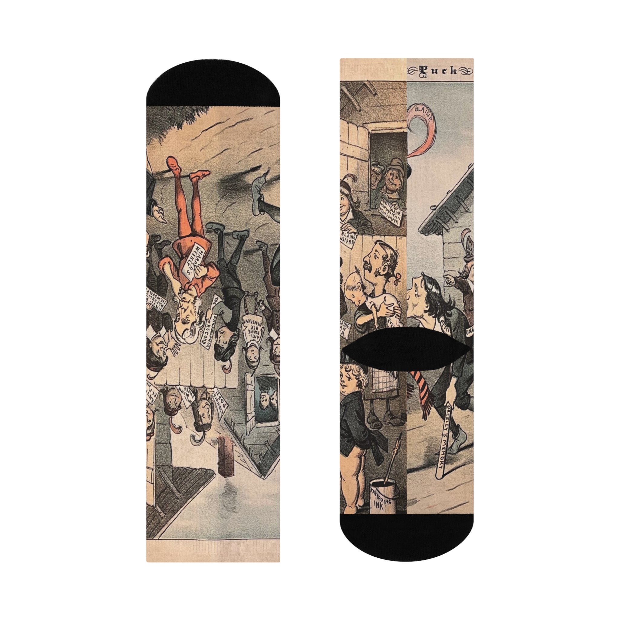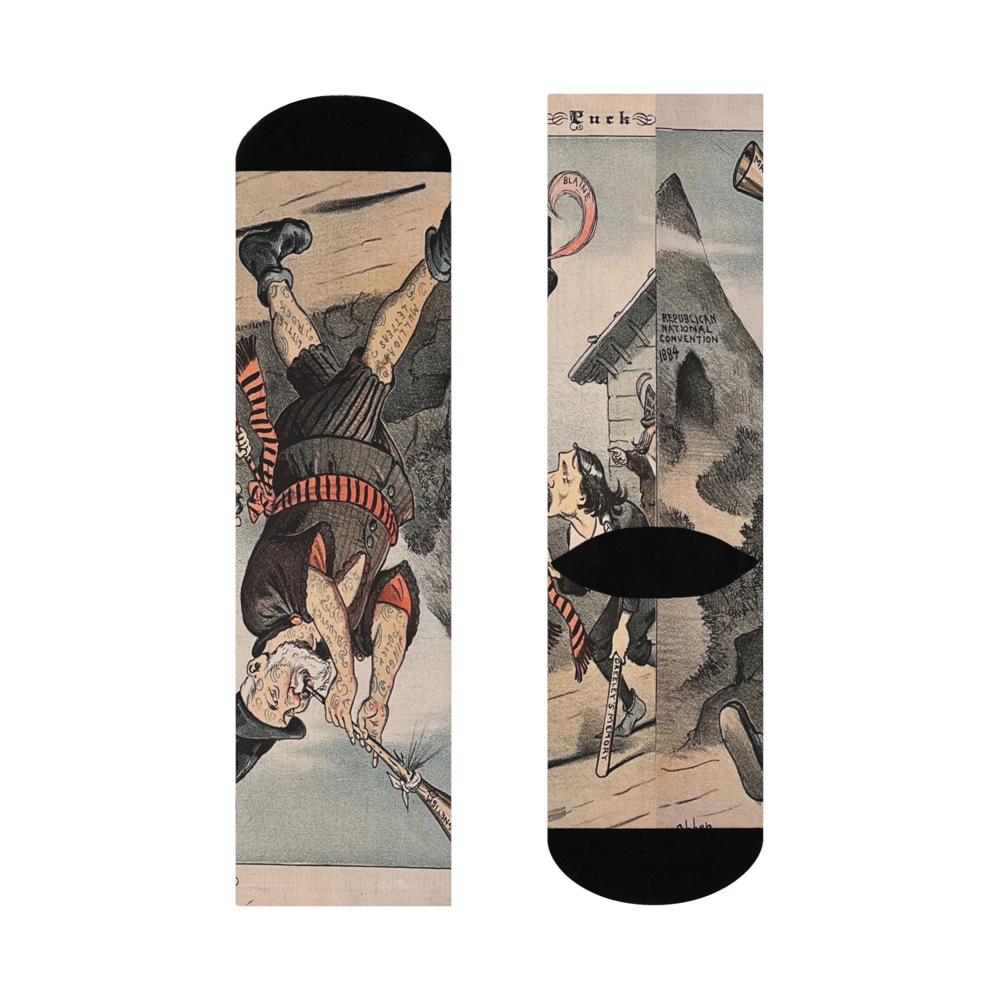Product features - Crew length with all-over vintage print and solid black heel/toe - Soft, stretchy knit made from polyester/nylon/cotton/spandex blend - Vibrant, high-resolution printing on 200-needle premium fabric - Cushioned bottoms for extra comfort during long wear - One-size fits women’s 5 to men’s 12 Care instructions - Do not dryclean - Do not iron - Do not tumble dry - Do not bleach - Machine wash: cold (max 30C or 90F)