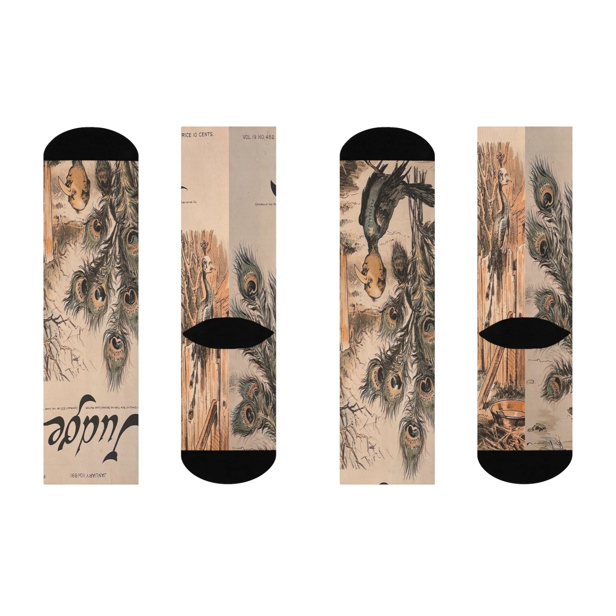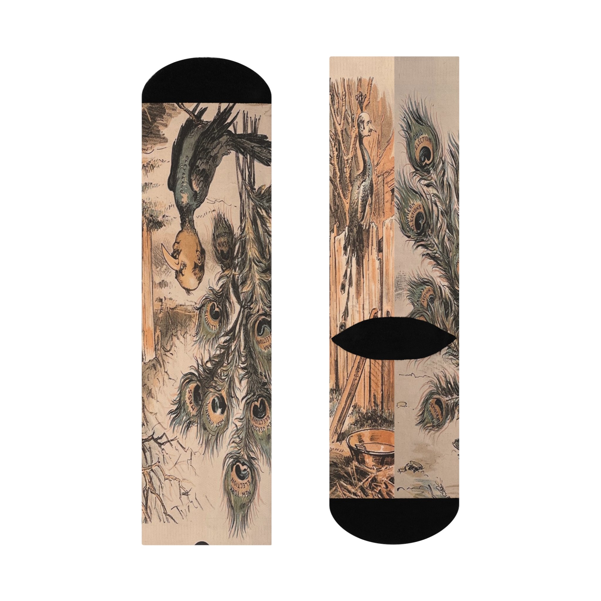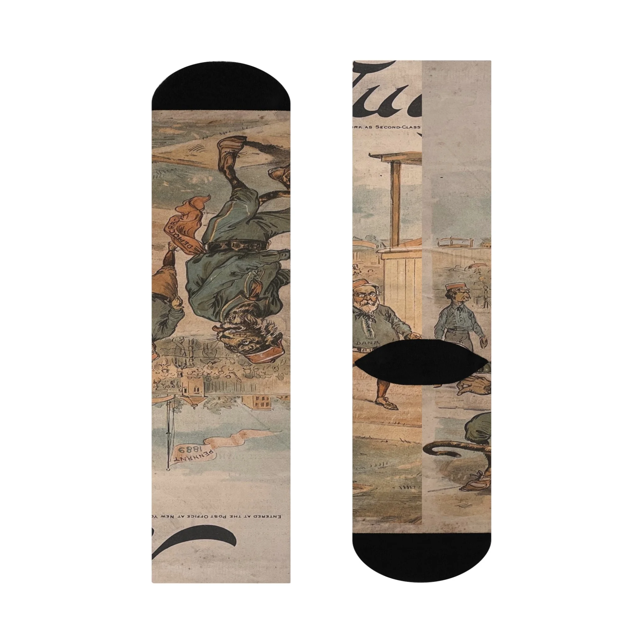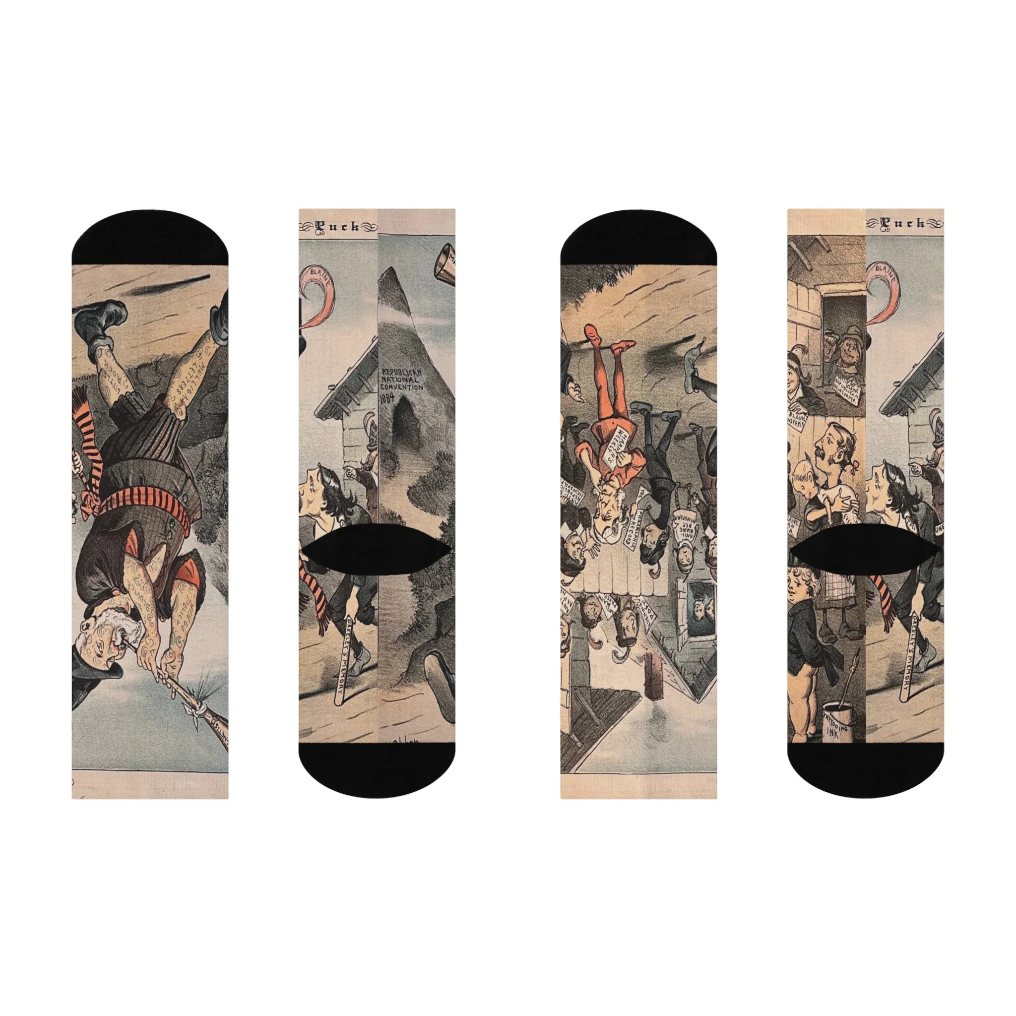 Product features - Crew length with all-over vintage print and solid black heel/toe - Soft, stretchy knit made from polyester/nylon/cotton/spandex blend - Vibrant, high-resolution printing on 200-needle premium fabric - Cushioned bottoms for extra comfort during long wear - One-size fits women’s 5 to men’s 12 Care instructions - Do not dryclean - Do not iron - Do not tumble dry - Do not bleach - Machine wash: cold (max 30C or 90F)
