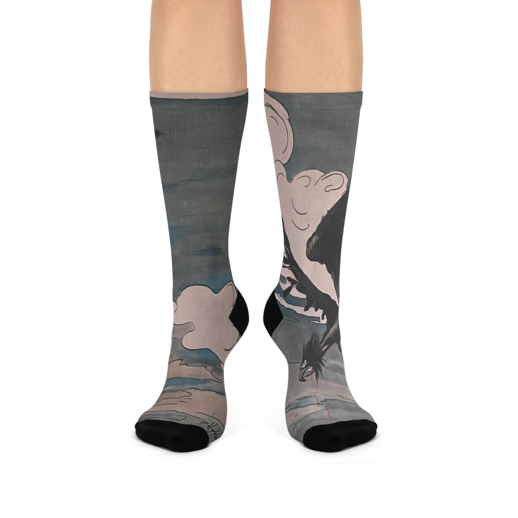Product features - Crew length for multiple uses — casual, dress or active wear - All-over print with solid black toe and heel accents - Stretchy, smooth fabric made from specially spun fibers for vivid printing - Cushioned bottoms with 200-needle premium knit for comfort and durability - One size fits women’s 5 US to men’s 12 US (73% polyester, 18% nylon, 3% cotton, 6% spandex) Care instructions - Do not dryclean - Do not iron - Do not tumble dry - Do not bleach - Machine wash: cold (max 30C or 90F)