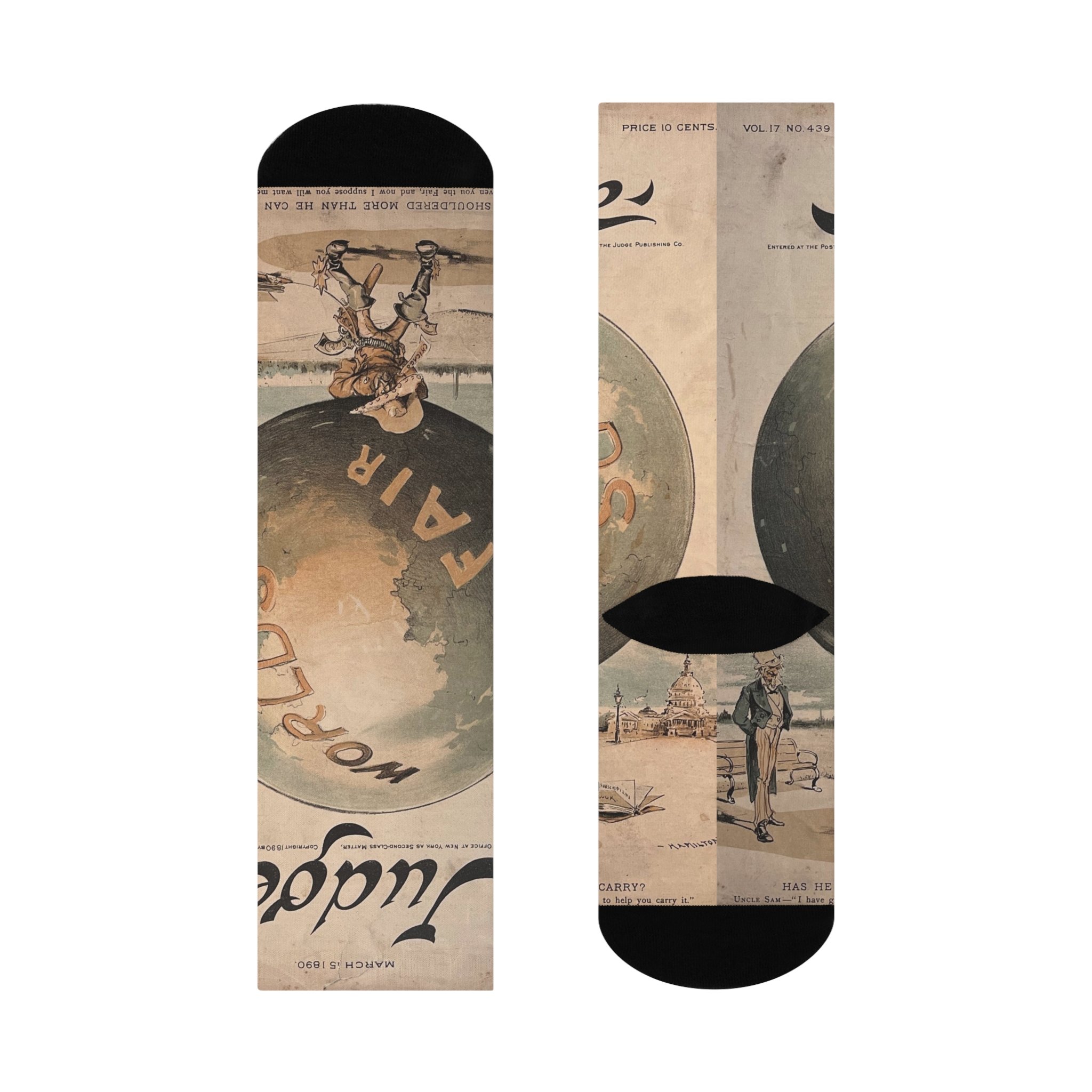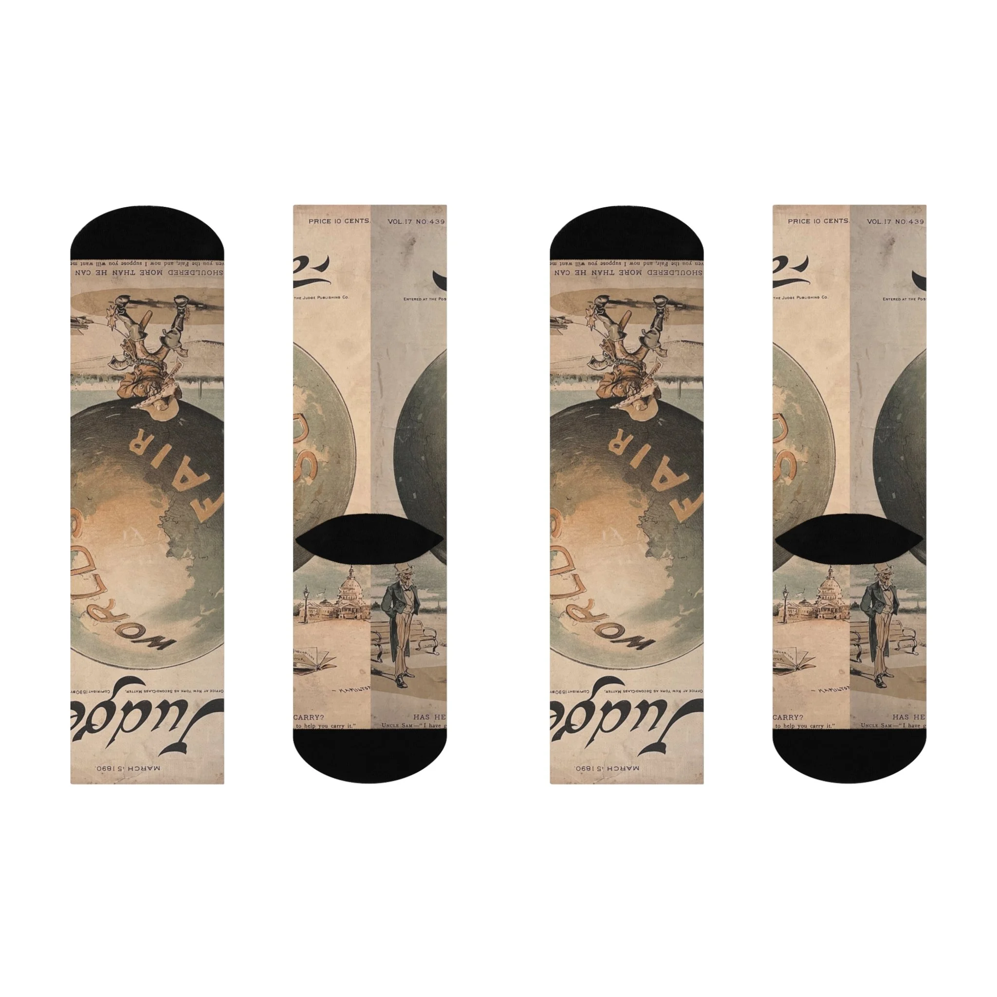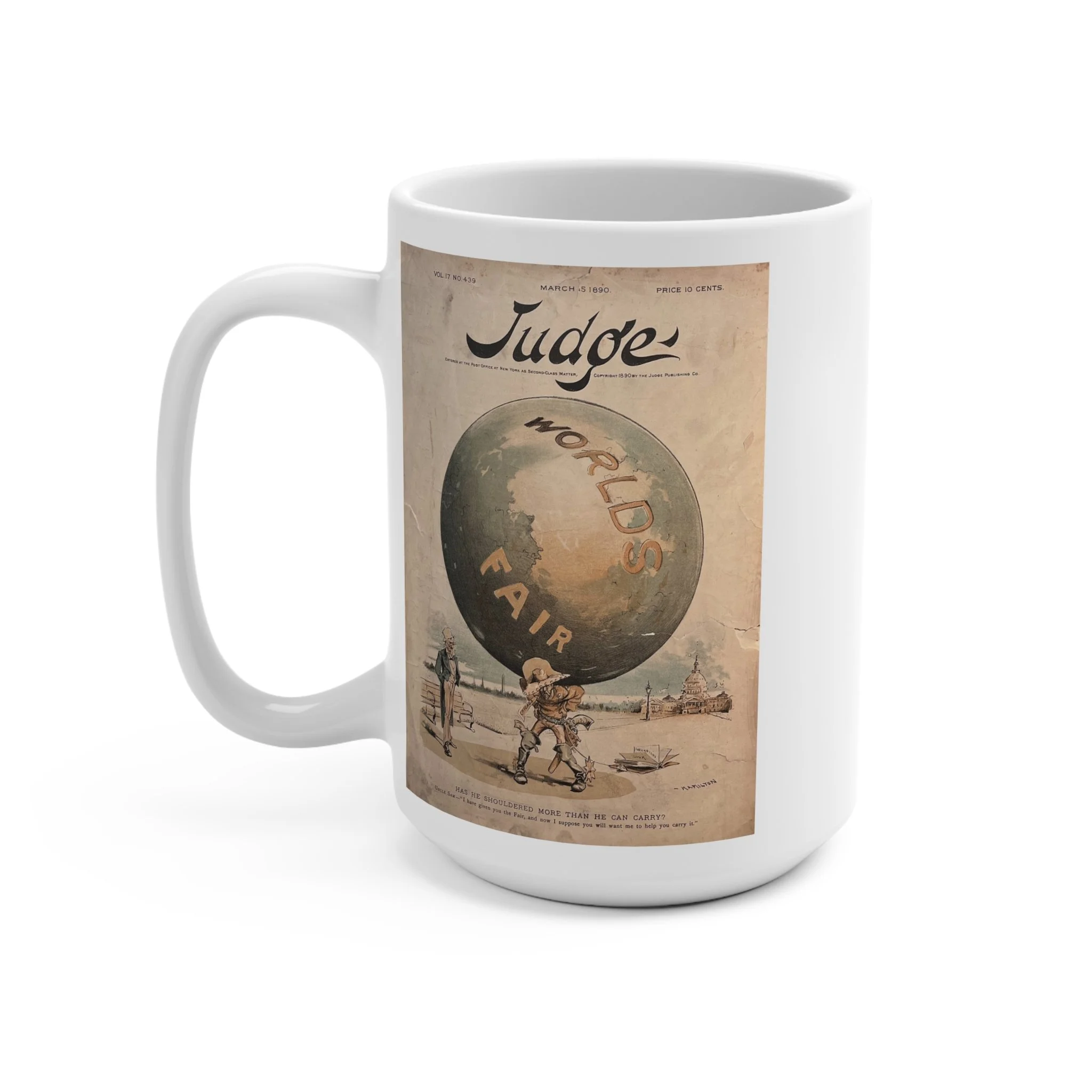 In 1890, Judge Magazine took aim at Chicago’s swaggering bid to host the World’s Fair. The artist imagines the city as an overconfident cowboy straining beneath a globe-sized promise, while Uncle Sam looks on with a familiar mix of annoyance and inevitability. It’s a classic American problem: leaders who chase spectacle, prestige, and headlines—and then expect the public to carry the weight when reality hits.
