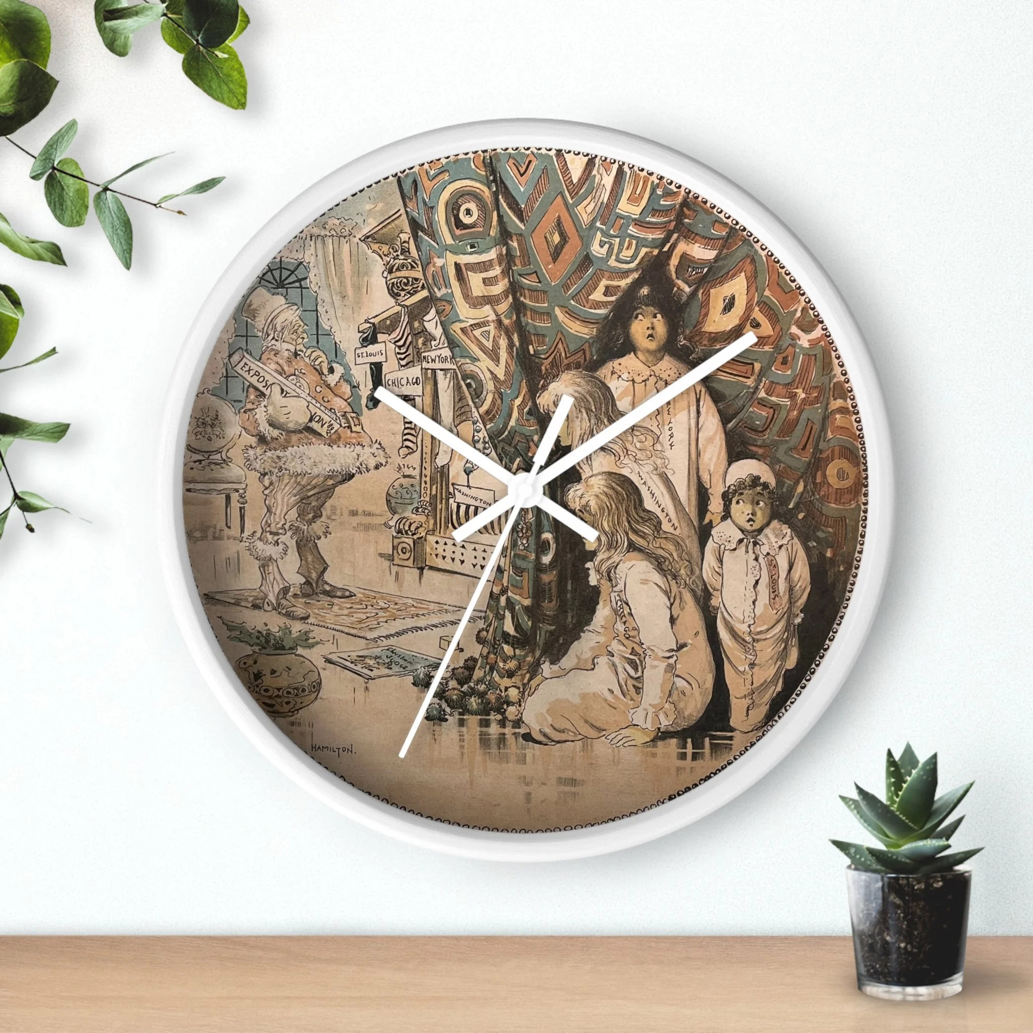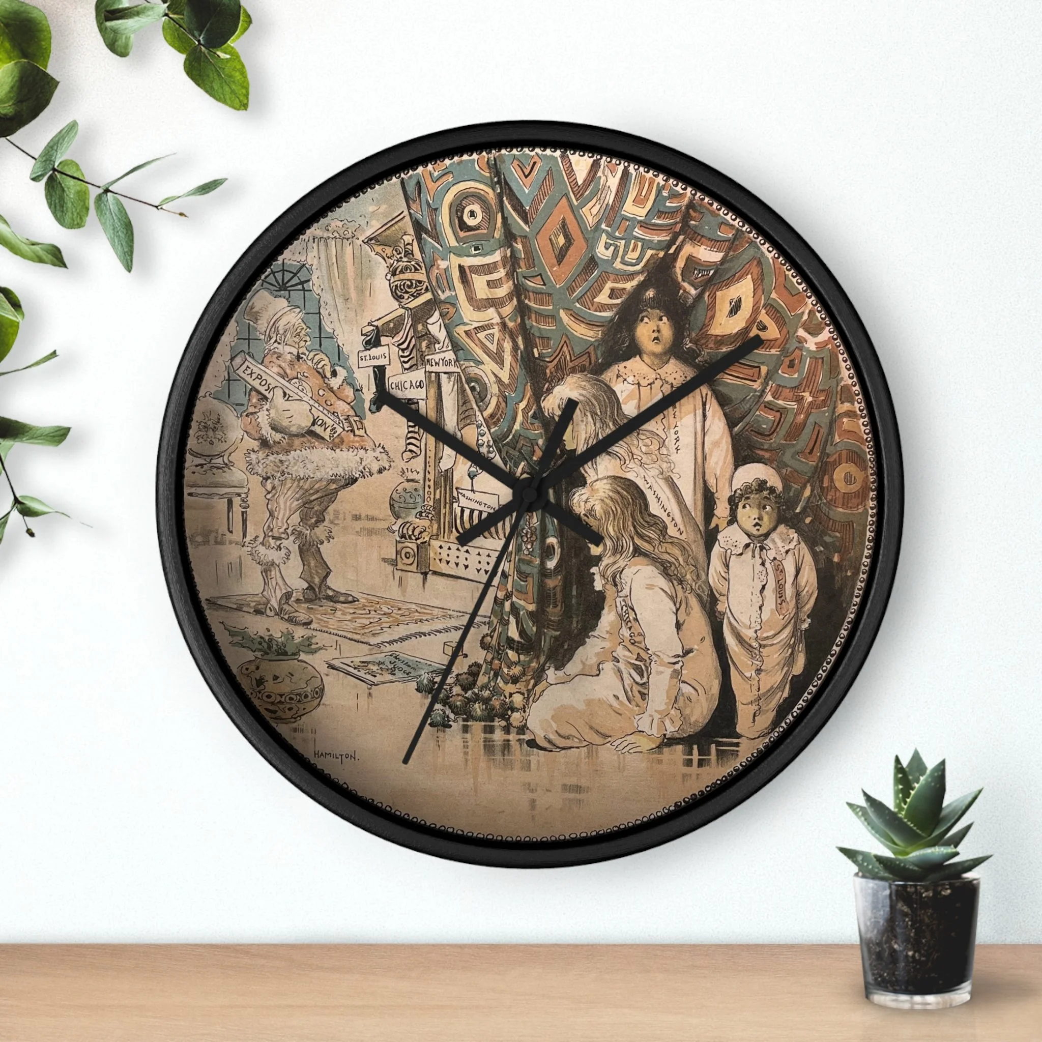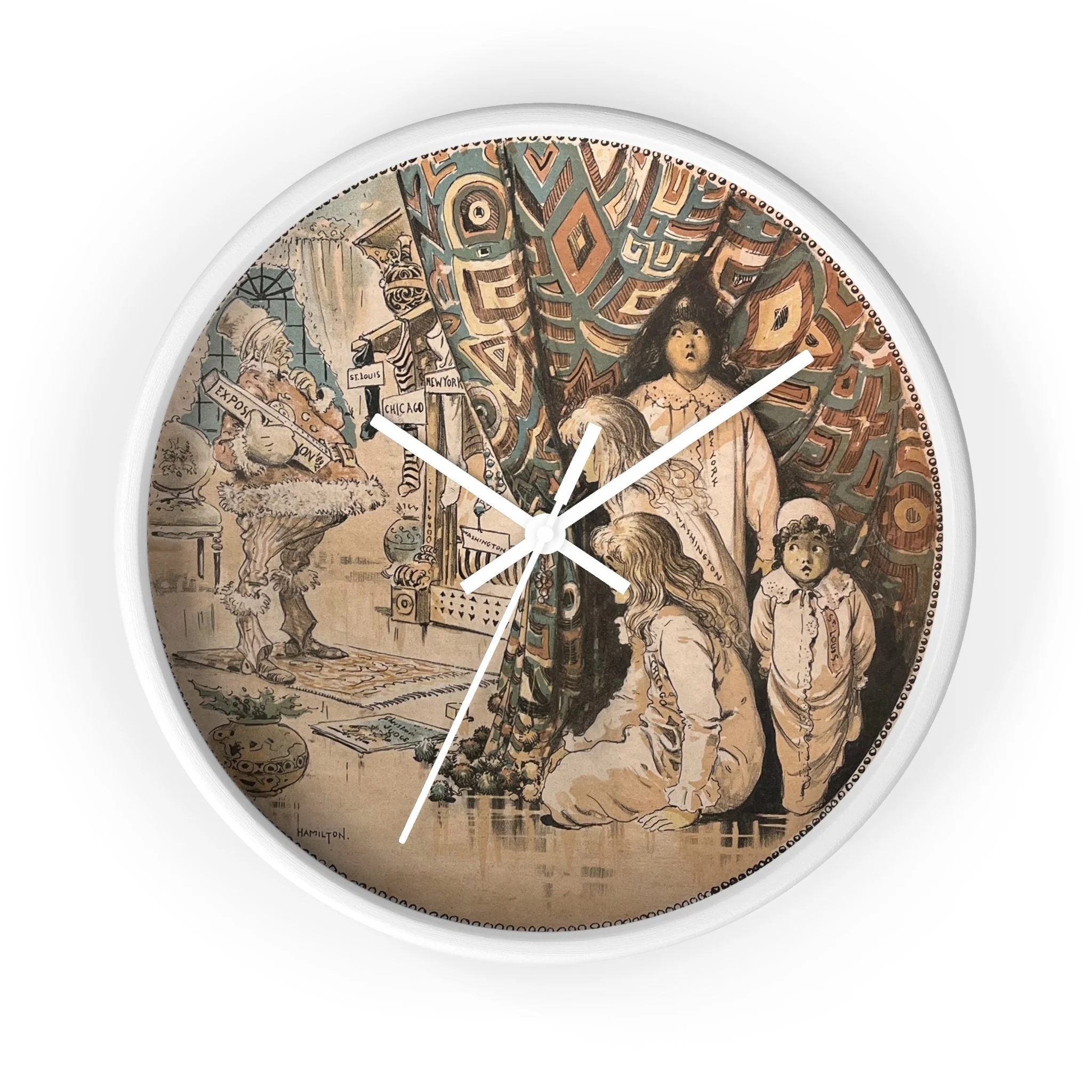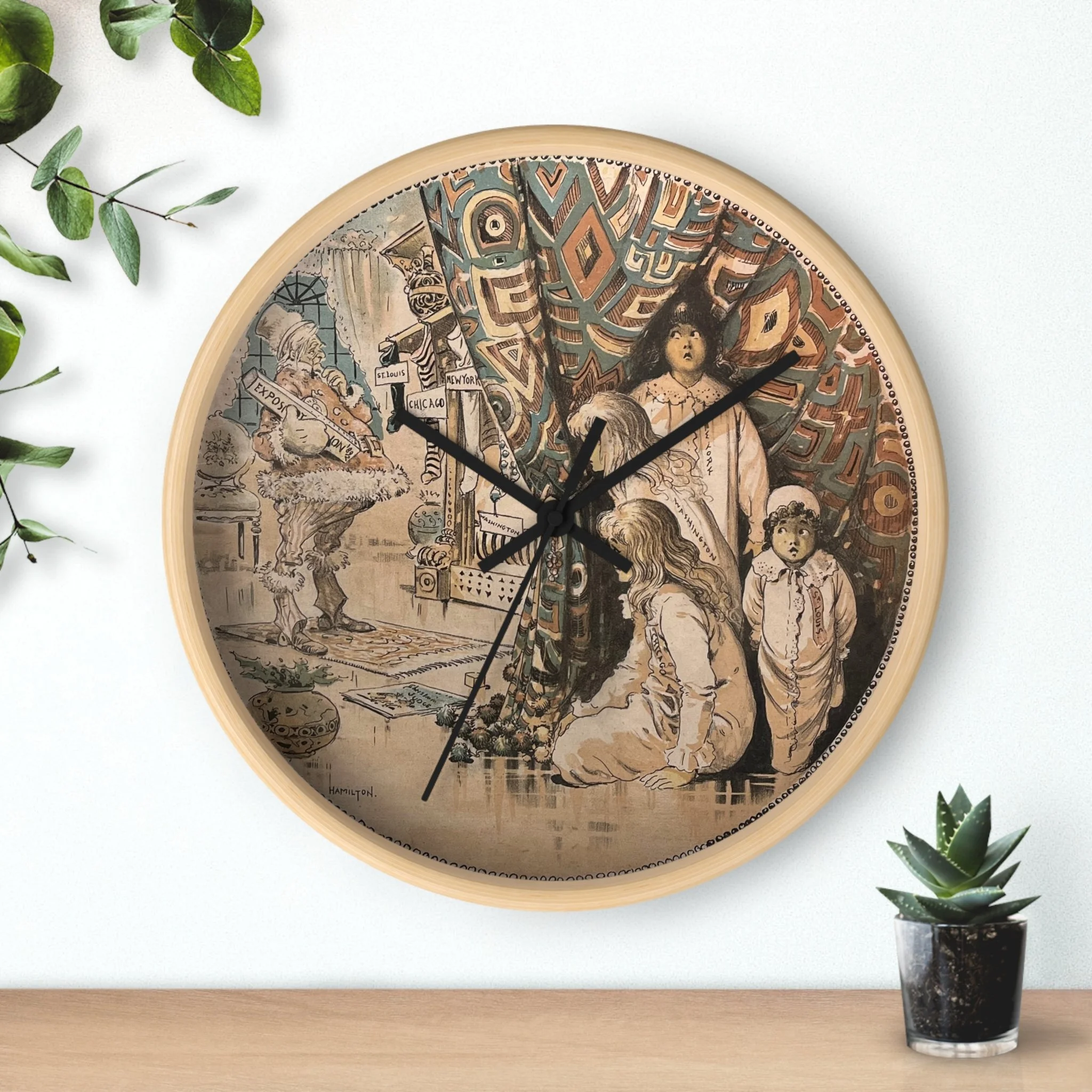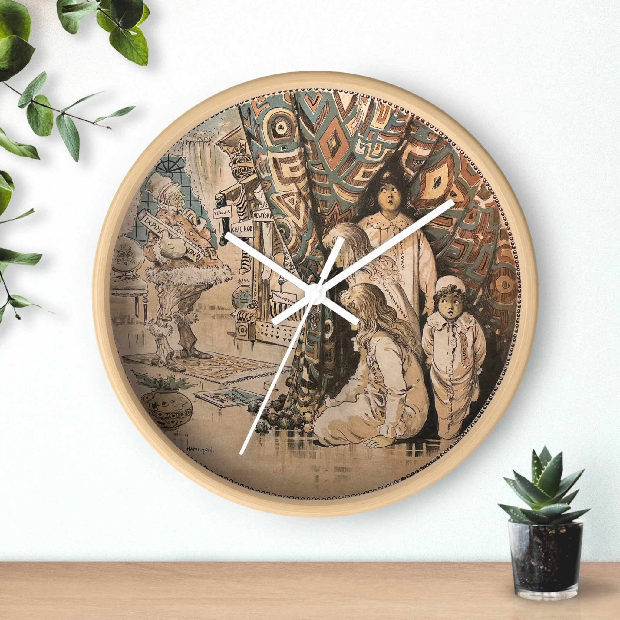 Product features - Available in natural wood, black, or white frames with matching hands - Pre-installed backside hook for easy hanging - Vibrant, high-definition printed illustration on plexiglass face - Silent quartz mechanism; requires one AA battery (not included) - One standard size: 10" x 10" (25.4 x 25.4 cm); for indoor use only Care instructions - Wipe the dust off gently with a clean, dry microfiber cloth