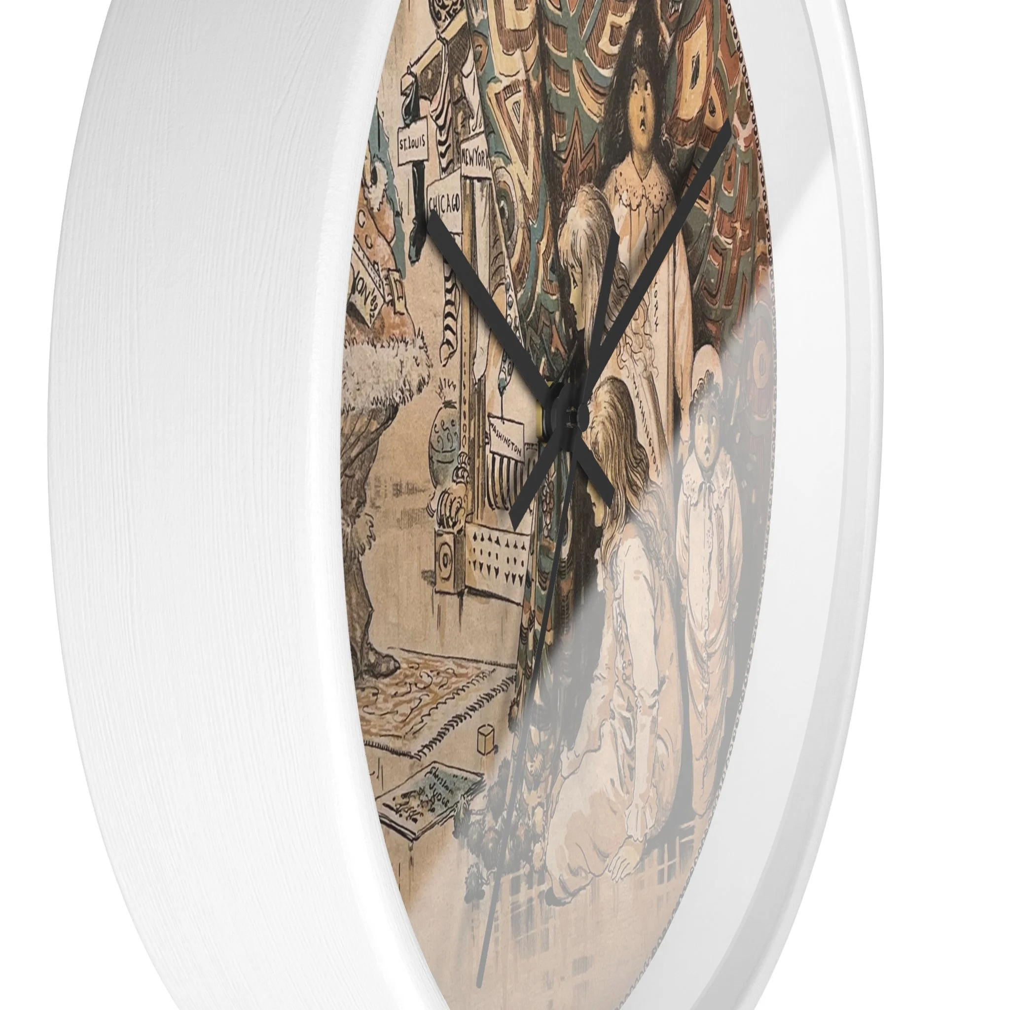 This 1889 Judge Magazine cover turns the fight to host the 1893 World’s Fair into a piece of pure political theater. Chicago, New York, St. Louis, and Washington appear like anxious suitors peeking through the curtain, each one hoping to be chosen while a family watches the drama unfold. It’s a gentle but sharp jab at how civic pride, national ambition, and political lobbying often slide into spectacle. Originally printed at a moment when cities were pouring money, favors, and political capital into winning the Fair, this illustration captures the competition with humor and a surprisingly modern eye. Over a century later, it still reads as a reminder that the scramble for power and prestige has never been rational — just louder, more frantic, and always a bit ridiculous.