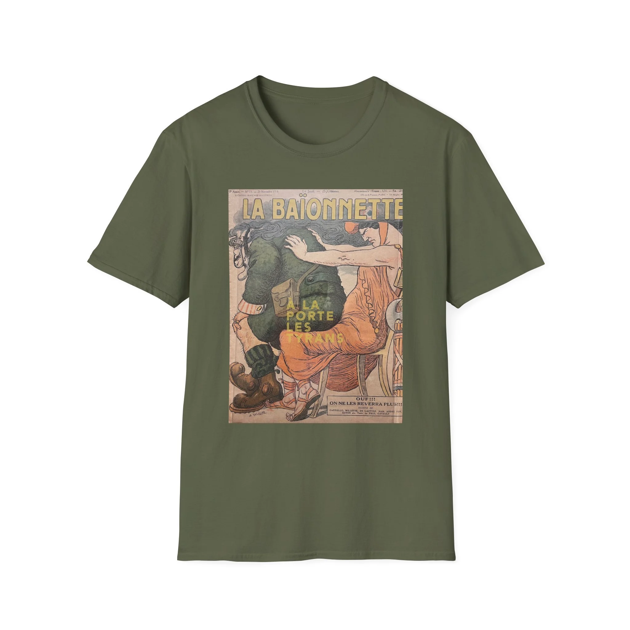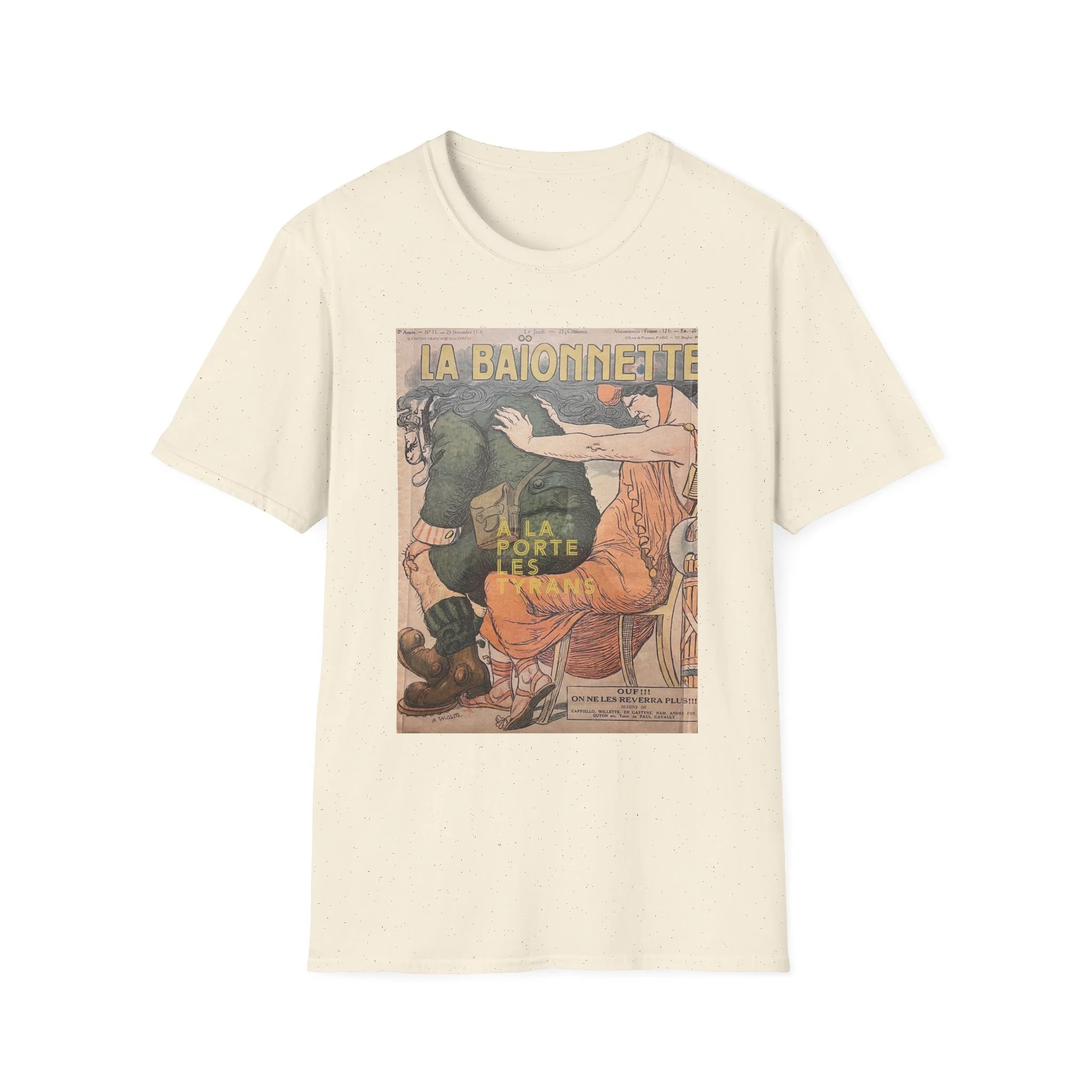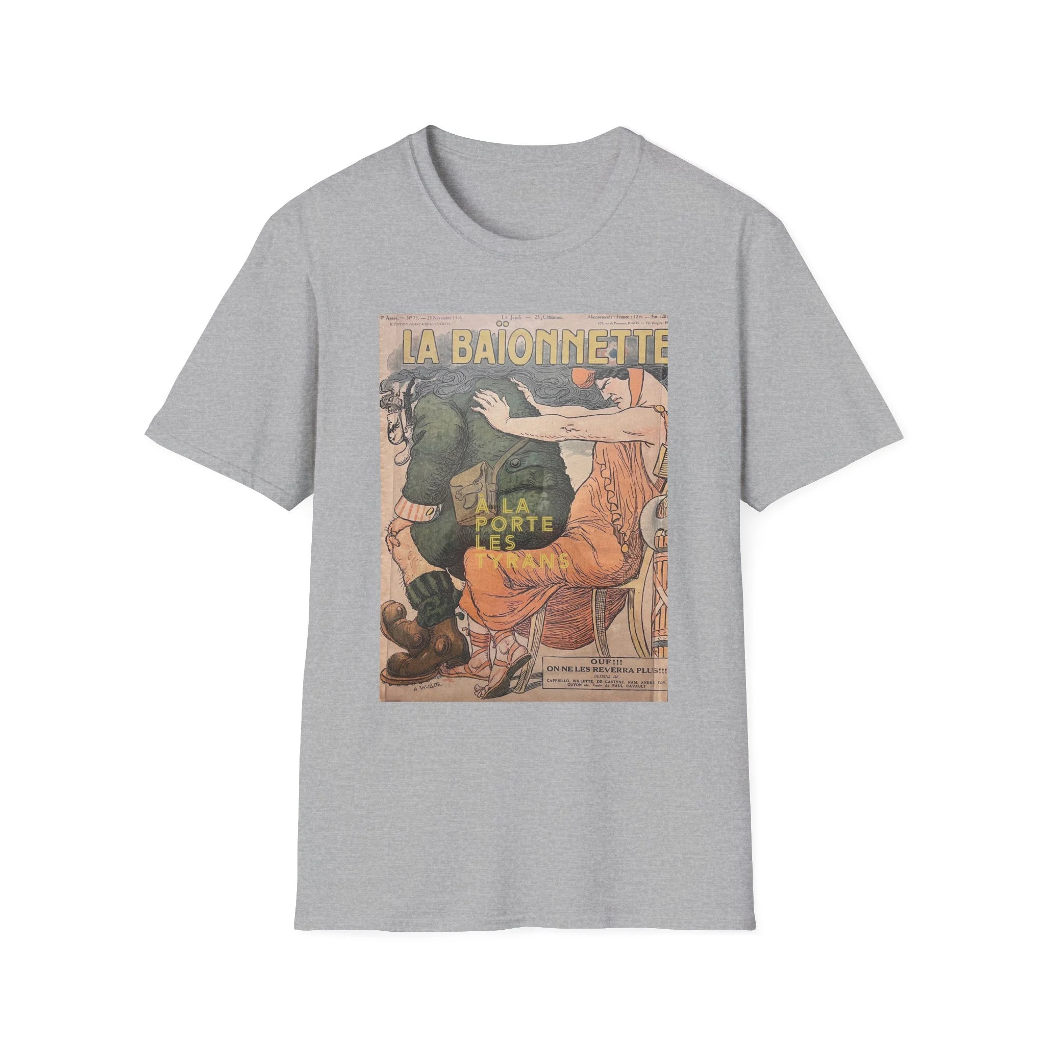 "À LA PORTE LES TYRANS" : A century-old French WWI illustration from La Baïonnette, restored and given new life for the present. In 1916 it mocked the strongmen of its day; today it reads like a reminder we still need: tyrants don’t step aside on their own — people have to shove.