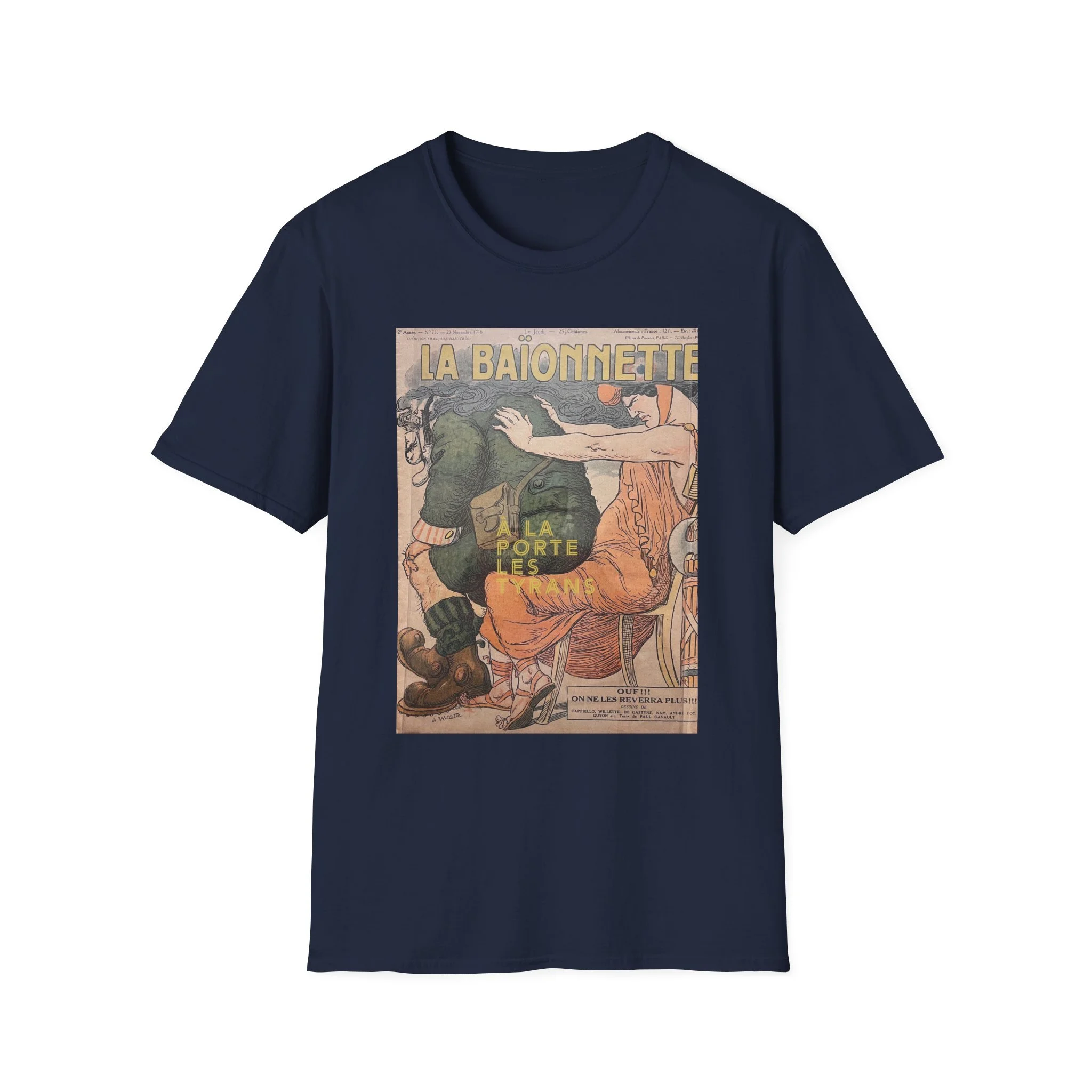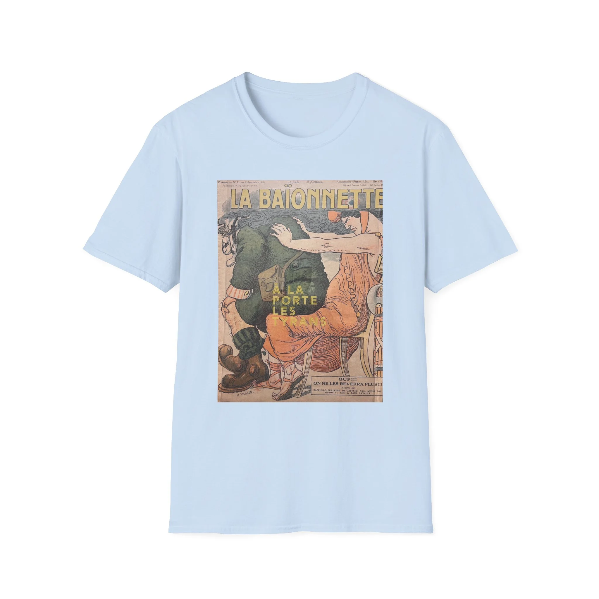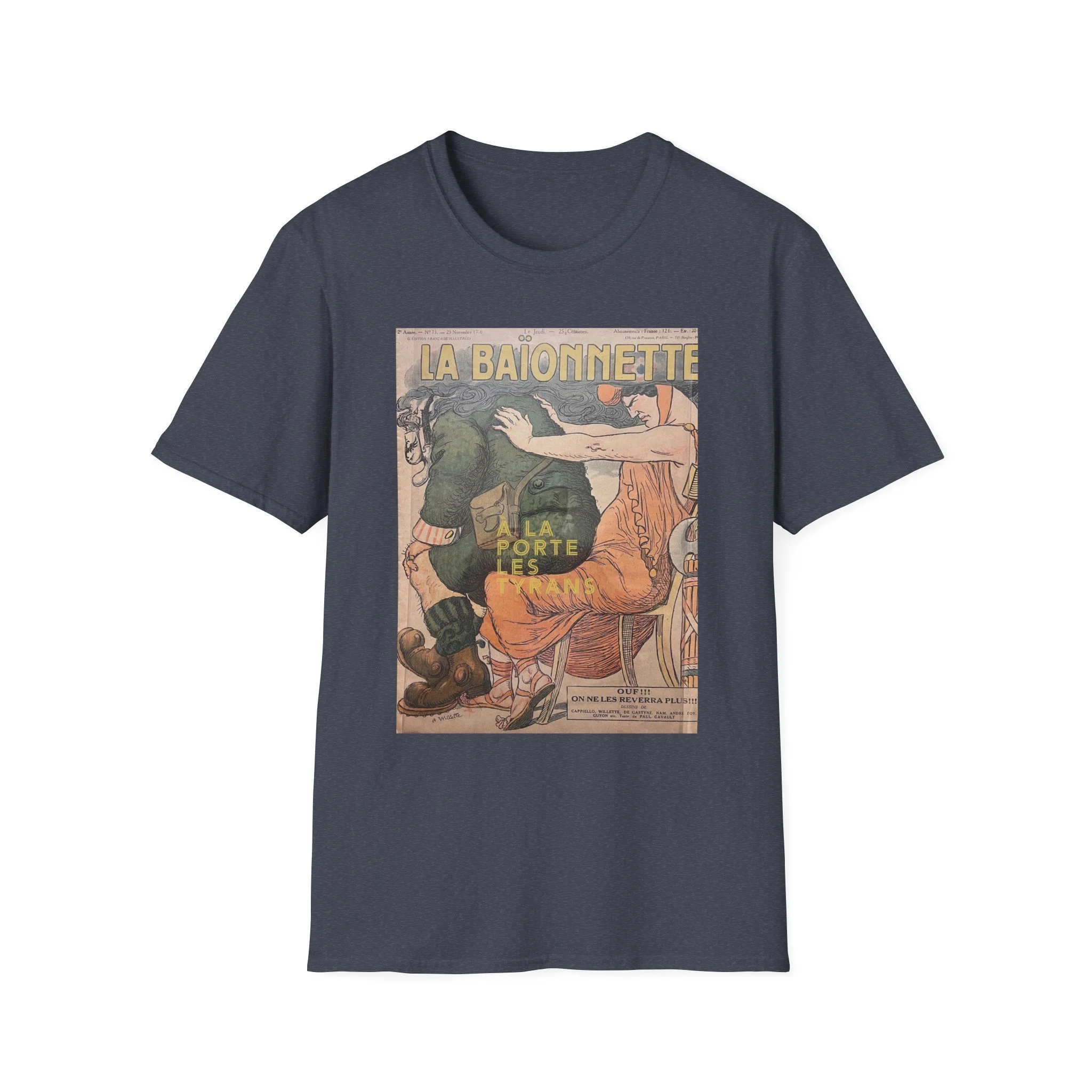 "À LA PORTE LES TYRANS" : A century-old French WWI illustration from La Baïonnette, restored and given new life for the present. In 1916 it mocked the strongmen of its day; today it reads like a reminder we still need: tyrants don’t step aside on their own — people have to shove.