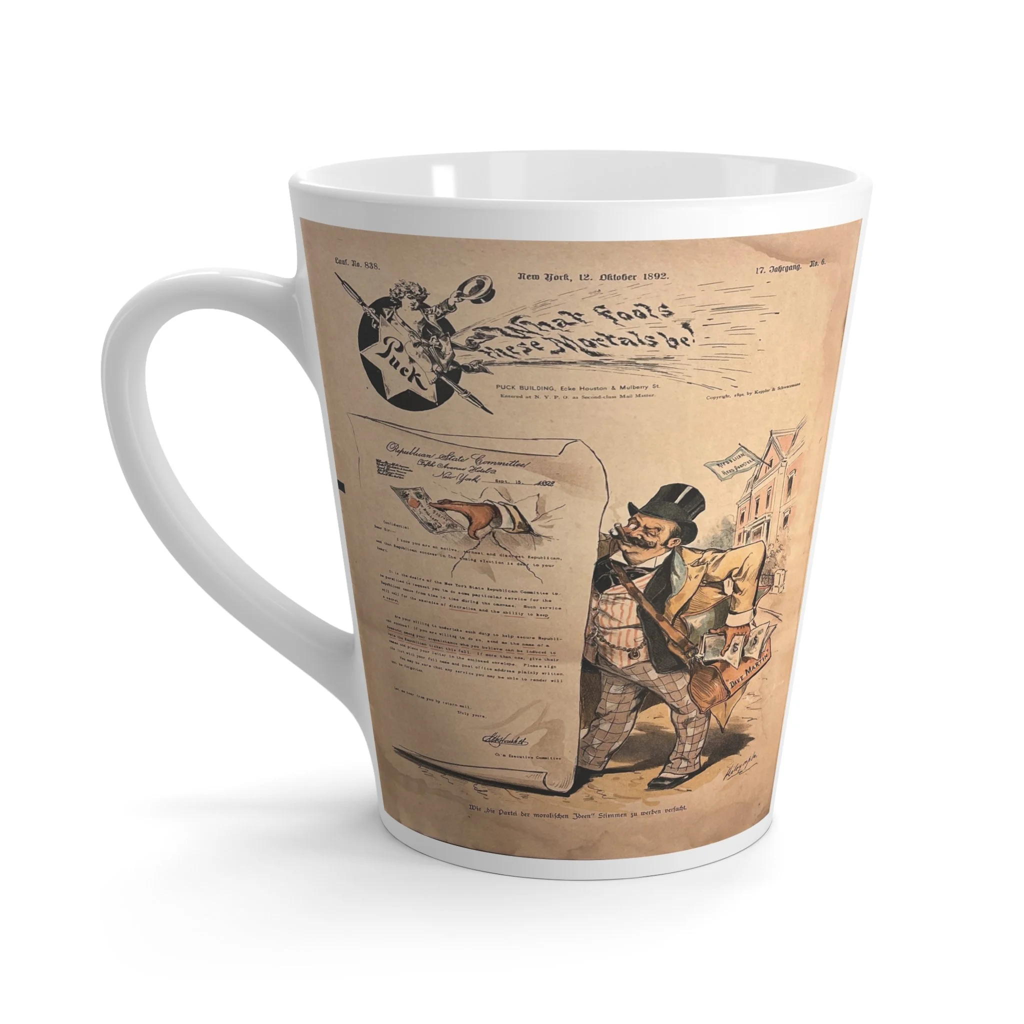 In this 1892 Puck cover, the artist exposes a Republican machine so corrupt it openly tries to purchase votes. A party operative, pockets bulging with cash, slips bribe money into envelopes while carrying a rifle and a smug grin. The printed letter beside him—reproduced from an actual political circular—spells out the strategy: pay Democrats to switch their votes and keep the operation secret. Puck specialized in calling out fraud, bribery, and authoritarian tactics masquerading as “moral ideas.” This cover makes clear that the threat to democracy has never come from ordinary voters — but from political insiders willing to buy power at any cost. More than a century later, it still resonates: corruption erodes democracy when parties treat elections as something to purchase, not something to earn.