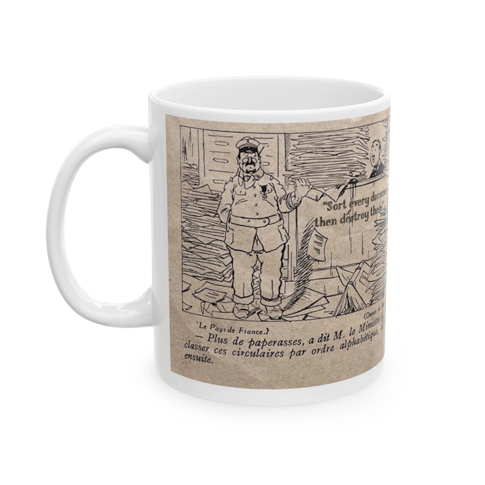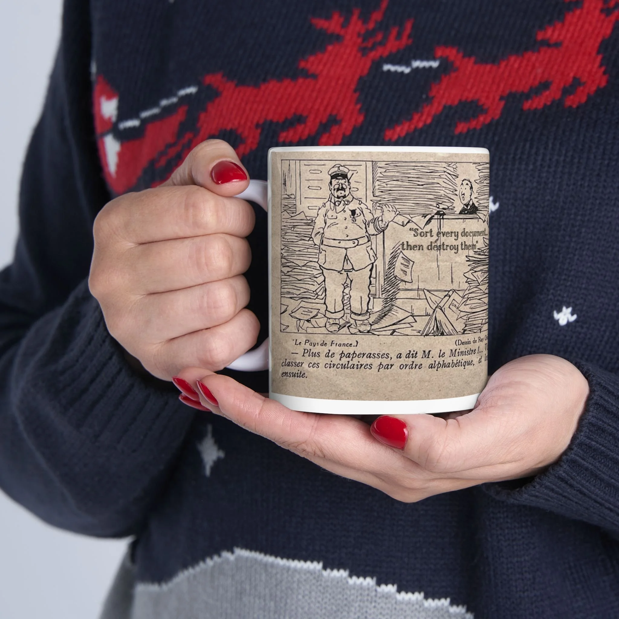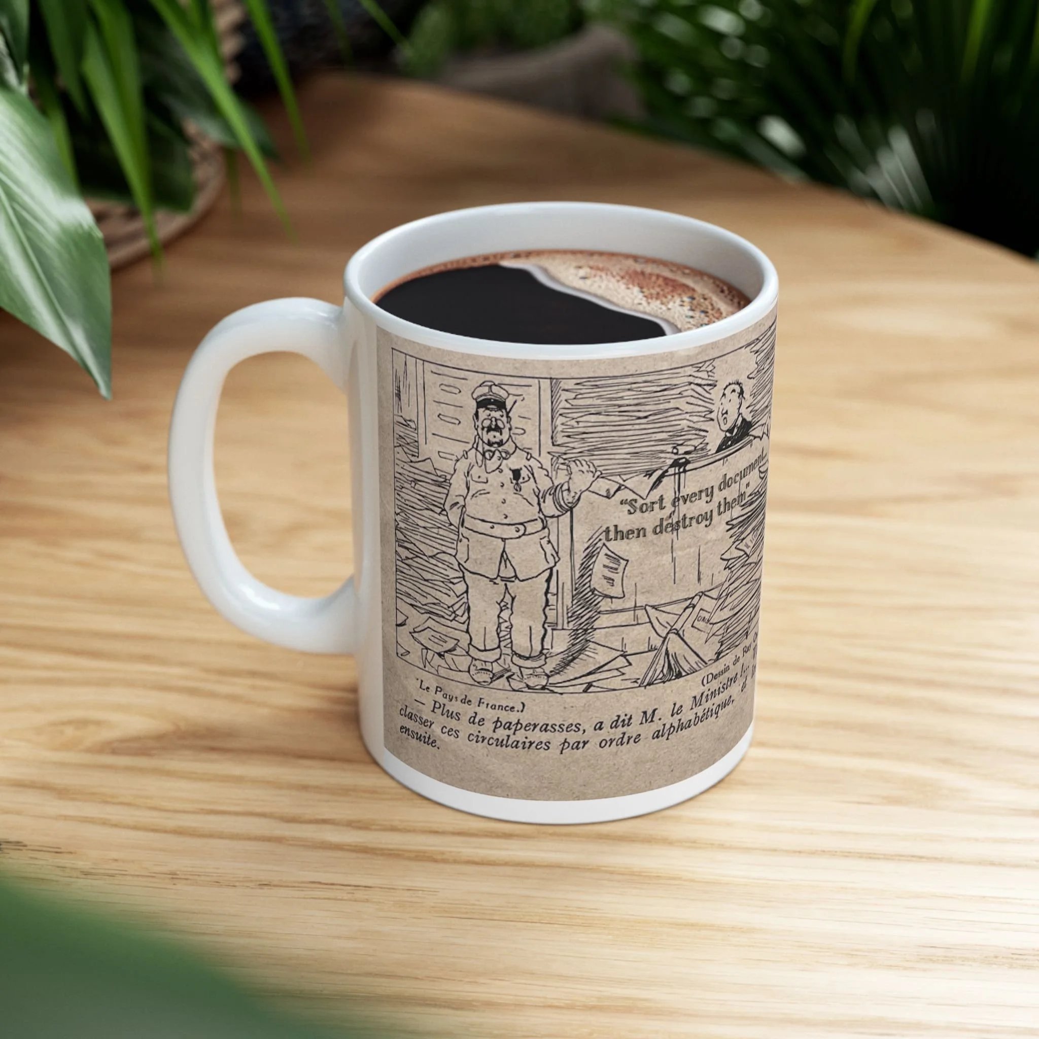 This 1916 French political cartoon from La Baïonnette skewers the logic of authoritarian bureaucracy: “Sort every document… then destroy them.” Power demands obedience—even when the orders make no sense. The minister gets to declare “no more paperwork,” but only after generating mountains of it and commanding a pointless ritual of order followed by erasure.