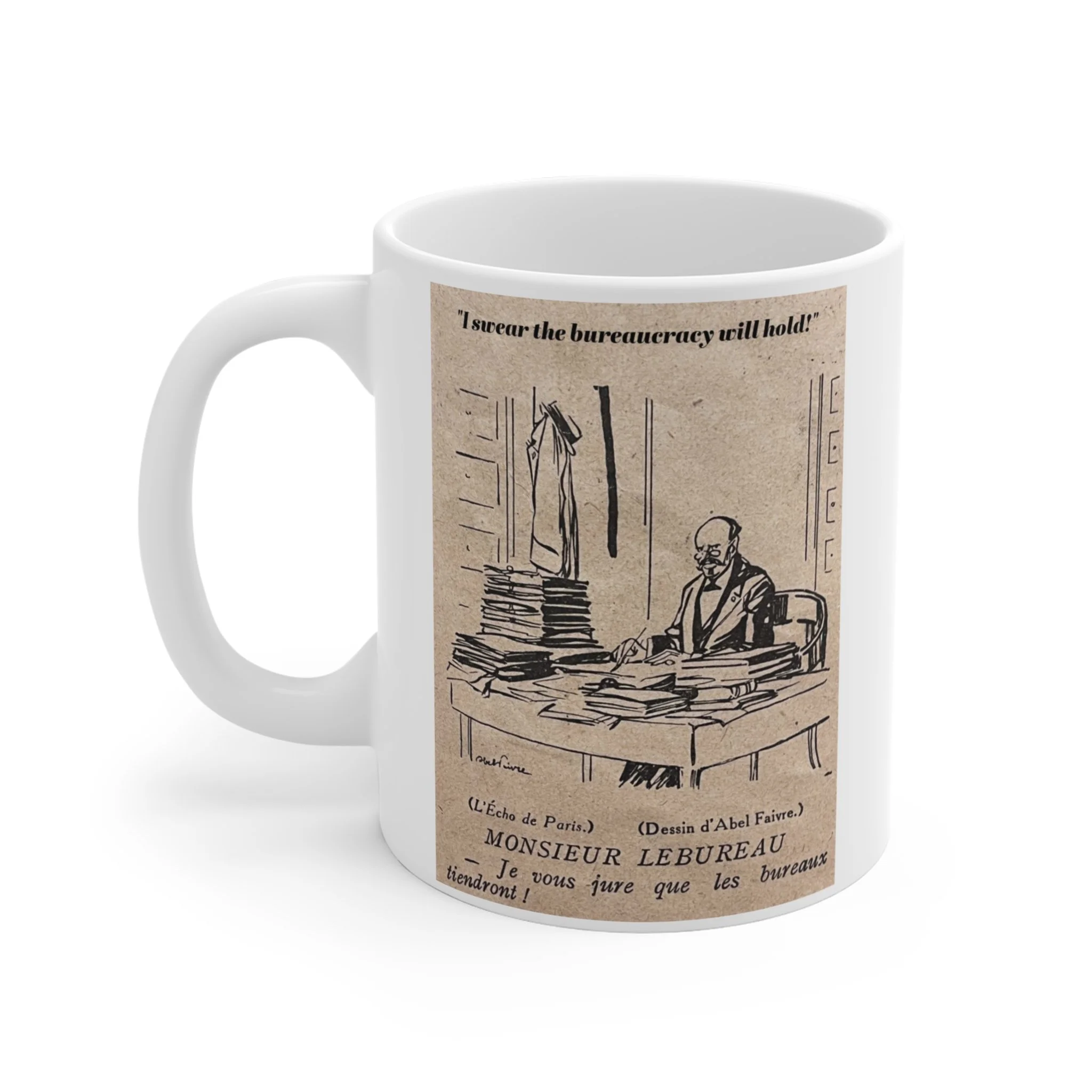 Monsieur Lebureau, buried in documents, insists: “I swear the bureaucracy will hold!”