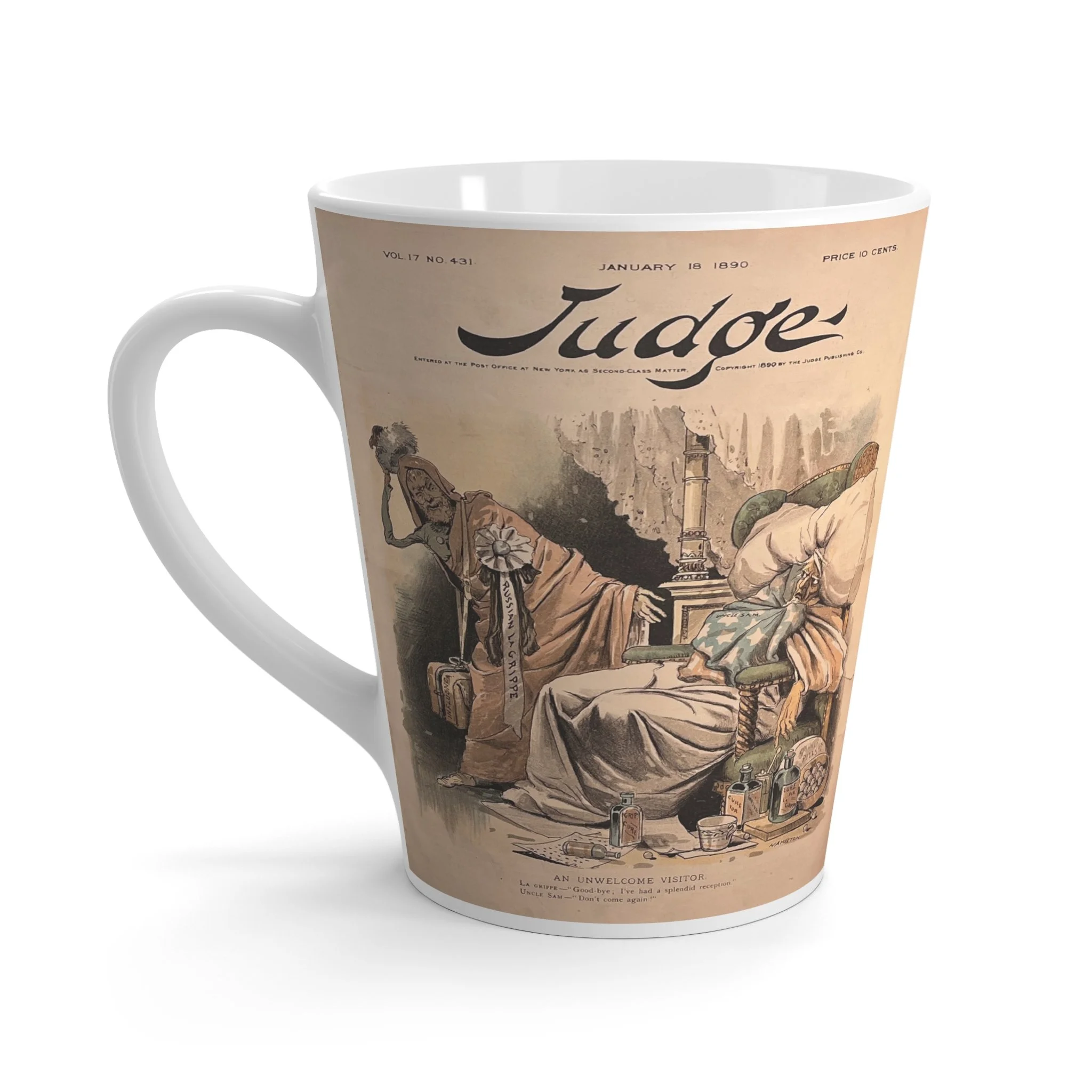 In this 1890 Judge cover, “La Grippe” — the flu epidemic then sweeping the country — is illustrated as a smug, cloaked visitor paying a call on a bedridden Uncle Sam. Bottles of patent “cures,” useless pills, and a wrecked sickroom complete the scene. It’s medical satire, yes, but also a criticism of how America responds when crisis walks in the door: too little preparation, too much bravado, and a nation left holding the bill. A century later, the image feels uncomfortably familiar. We’ve watched modern political movements deny science, sabotage public health, and treat national illness as a culture-war prop. The cartoon reminds us that epidemics don’t care about slogans — and that ignoring reality has always come with a cost.