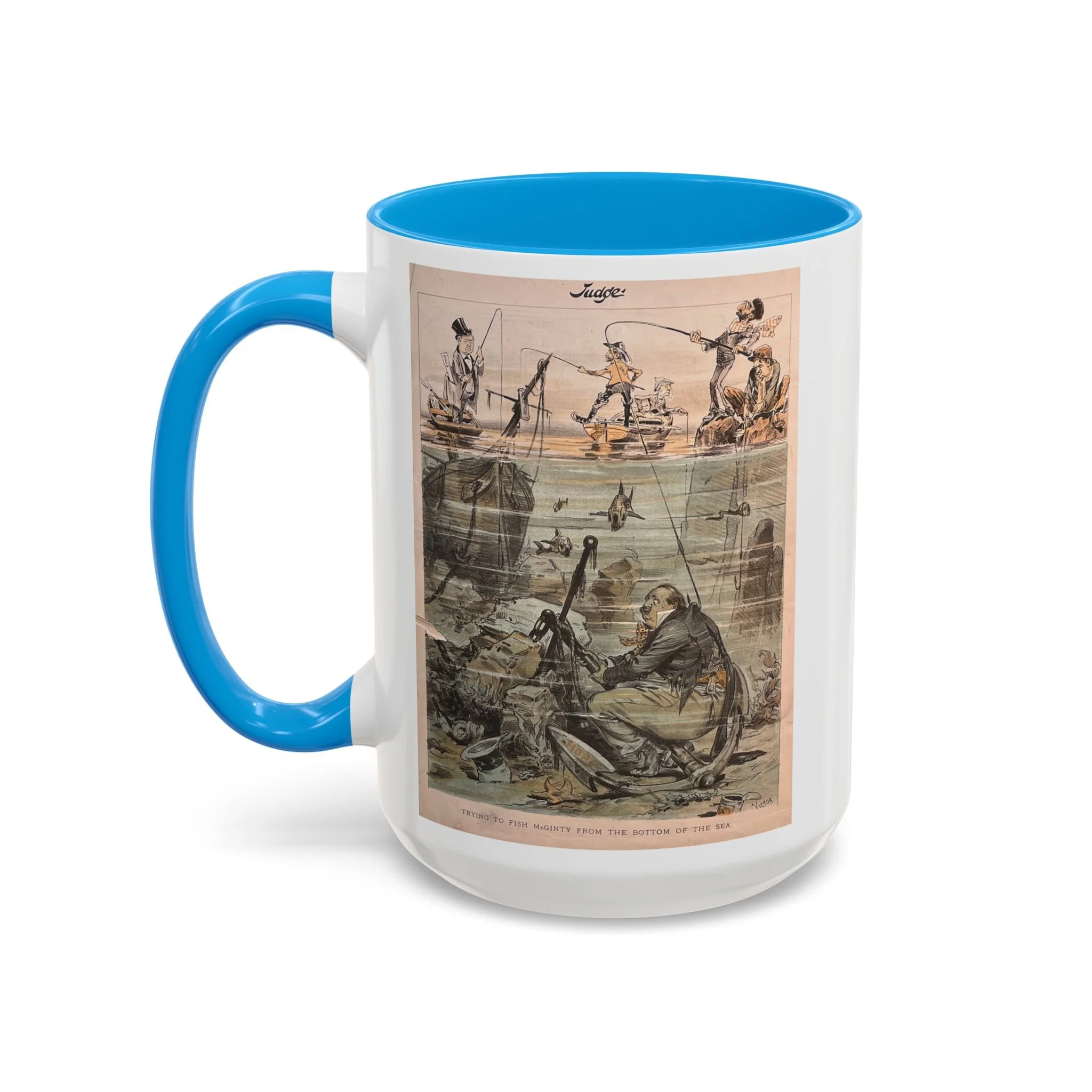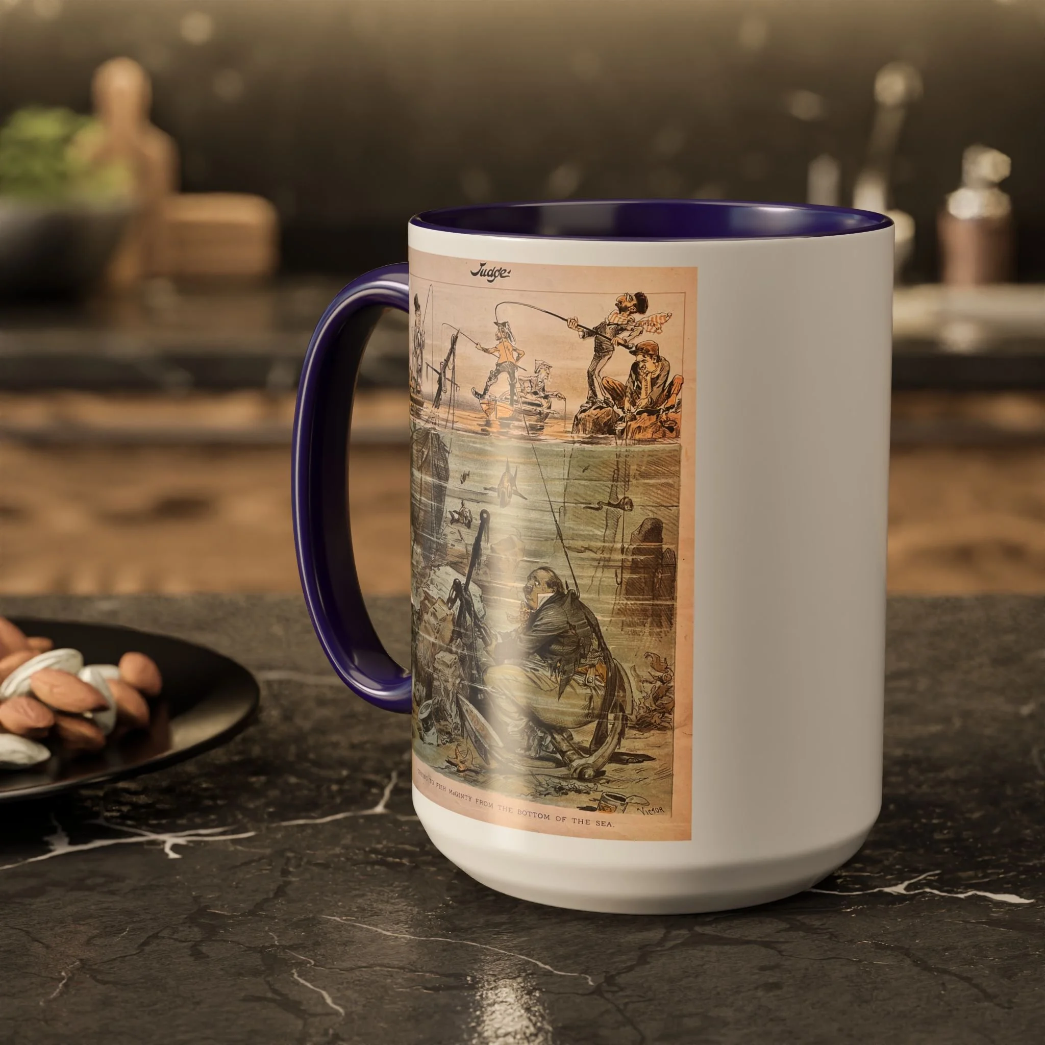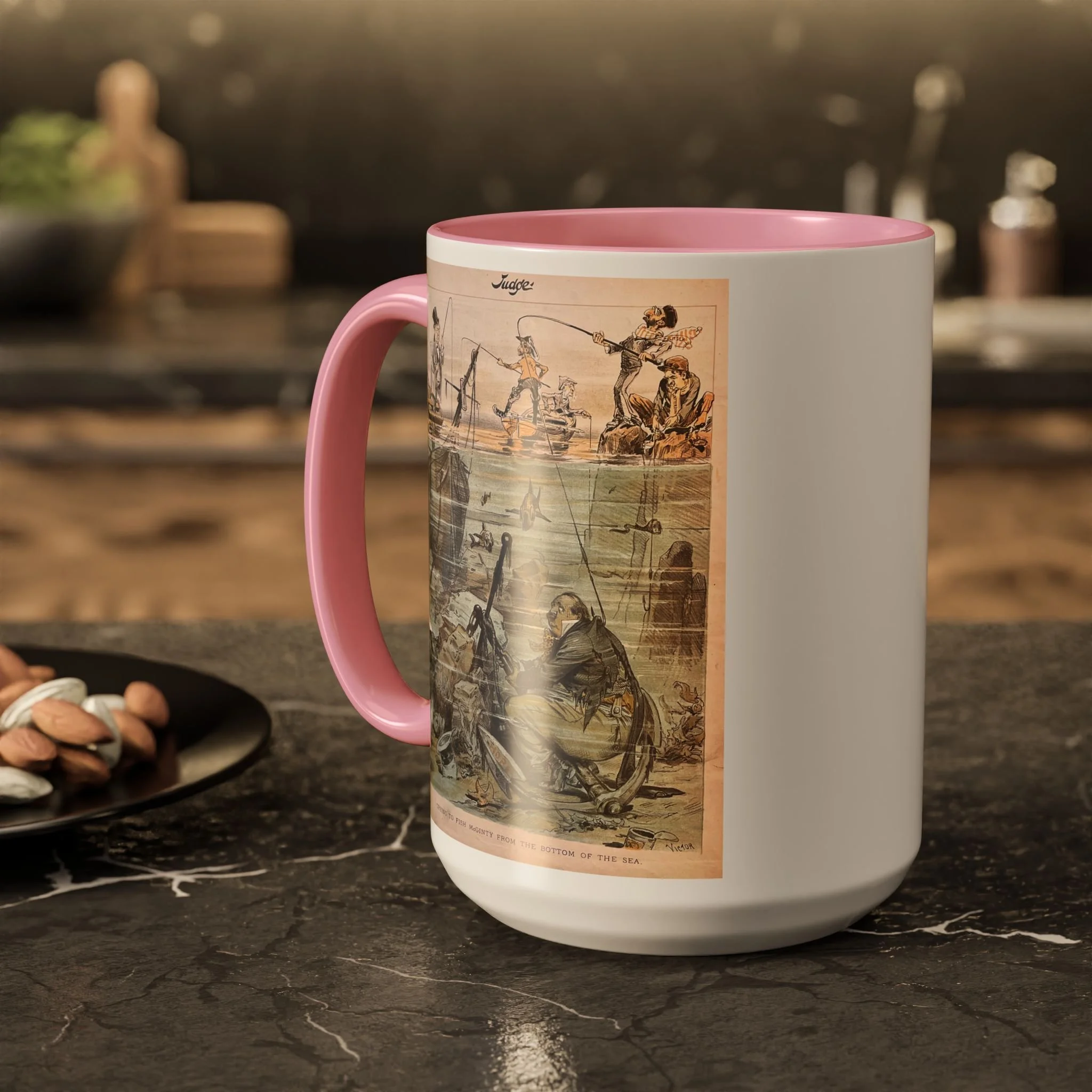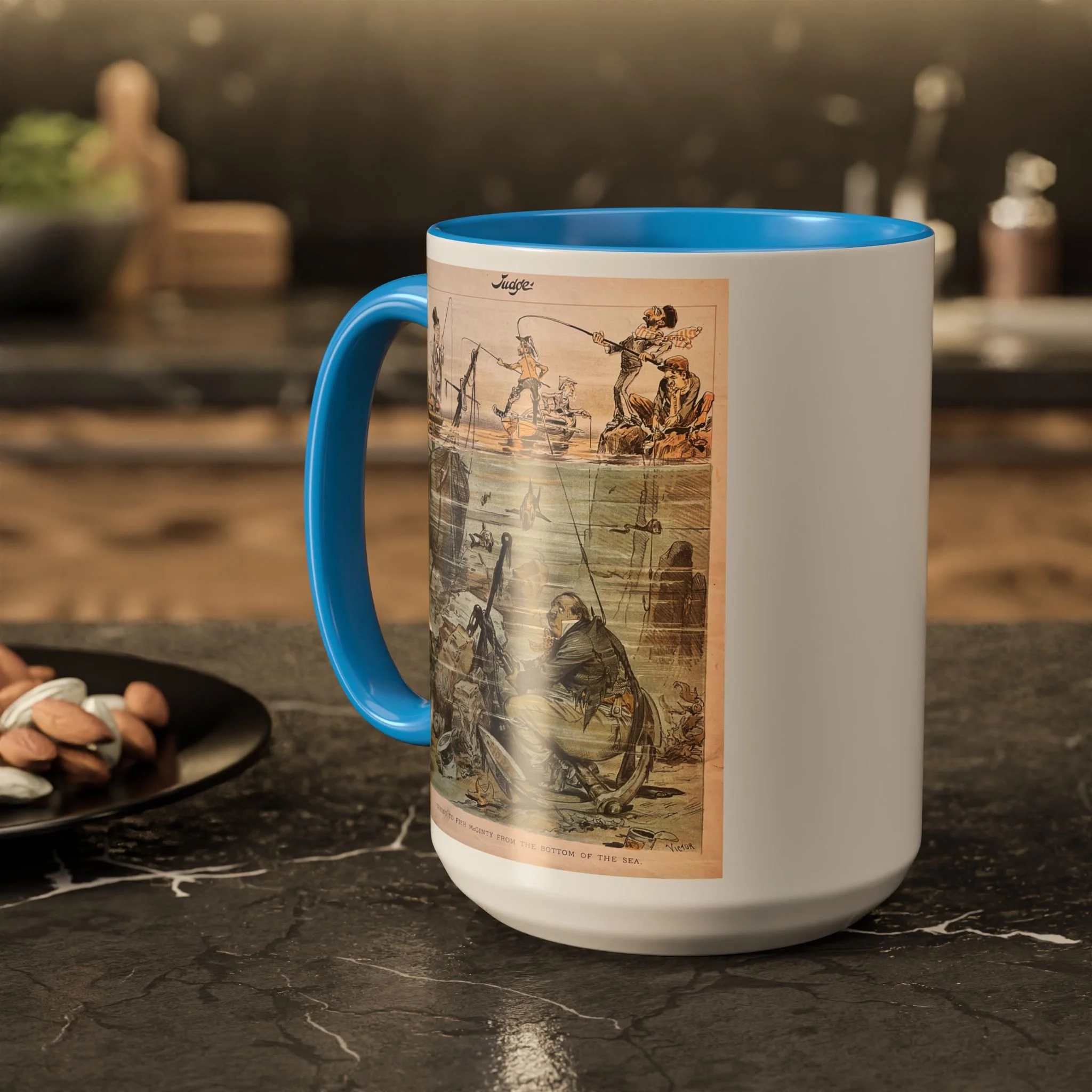 Trying to Fish McGinty from the Bottom of the Sea appeared in Judge Magazine in 1889, during an era when American politics was drenched in patronage, bribery, and machine control. “McGinty” was Judge’s running symbol for the incompetent, scandal-ridden party boss who keeps dragging his allies down with him. Here he sits literally on the ocean floor—entangled in wreckage and corruption—while party operatives desperately try to haul him back to the surface. The message was unmistakable then, and still relevant today: you can’t rescue a sinking political machine by pretending it isn’t sinking. Judge’s artists used humor to expose the cowardice of politicians who protect failed leaders instead of confronting the rot that keeps dragging democracy under.
