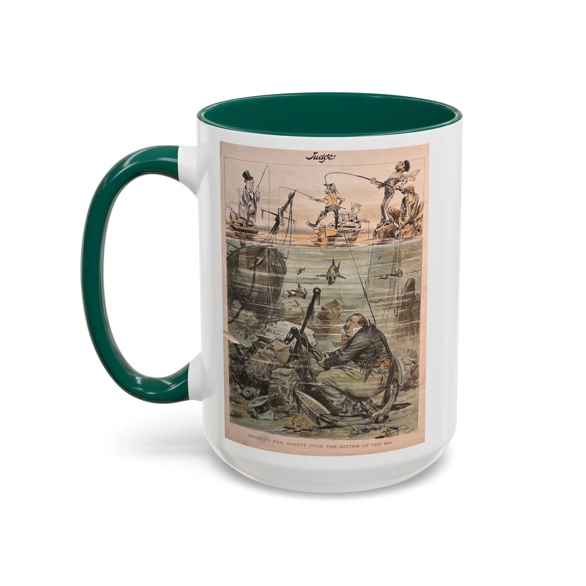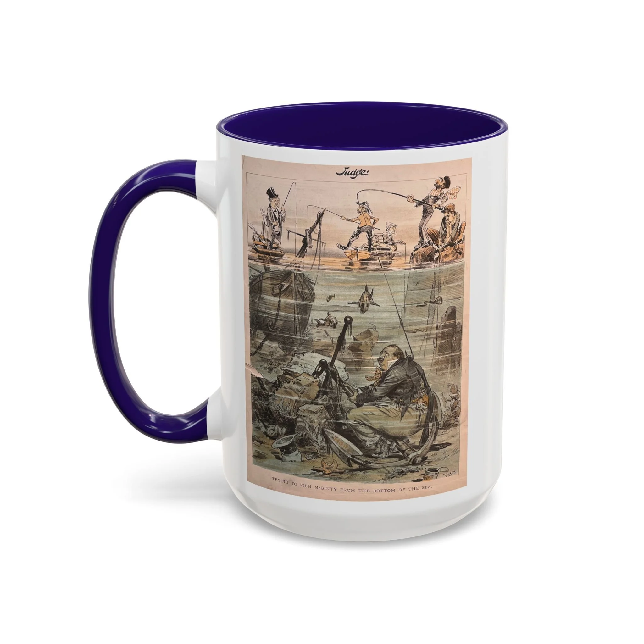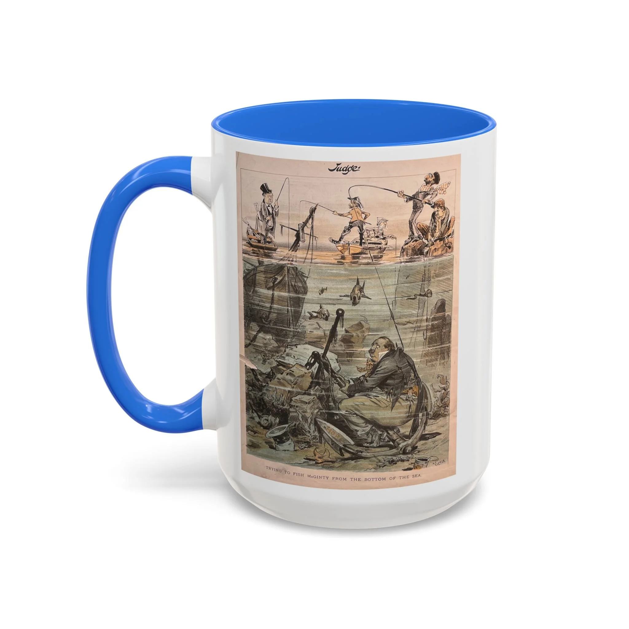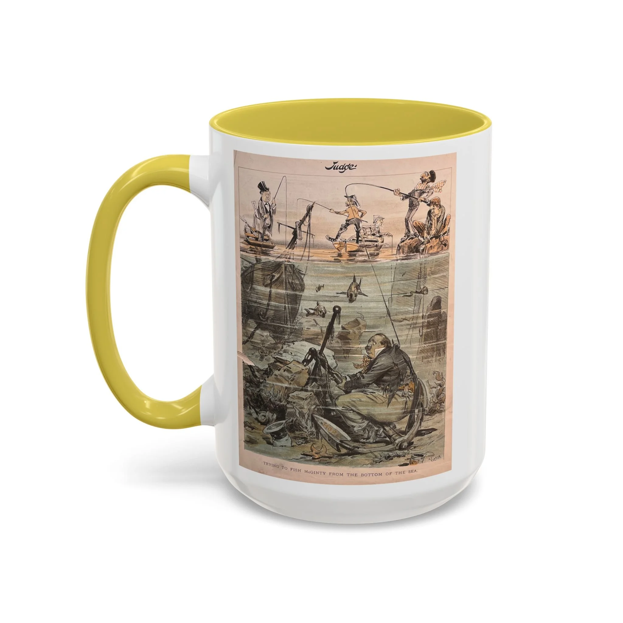Trying to Fish McGinty from the Bottom of the Sea appeared in Judge Magazine in 1889, during an era when American politics was drenched in patronage, bribery, and machine control. “McGinty” was Judge’s running symbol for the incompetent, scandal-ridden party boss who keeps dragging his allies down with him. Here he sits literally on the ocean floor—entangled in wreckage and corruption—while party operatives desperately try to haul him back to the surface. The message was unmistakable then, and still relevant today: you can’t rescue a sinking political machine by pretending it isn’t sinking. Judge’s artists used humor to expose the cowardice of politicians who protect failed leaders instead of confronting the rot that keeps dragging democracy under.