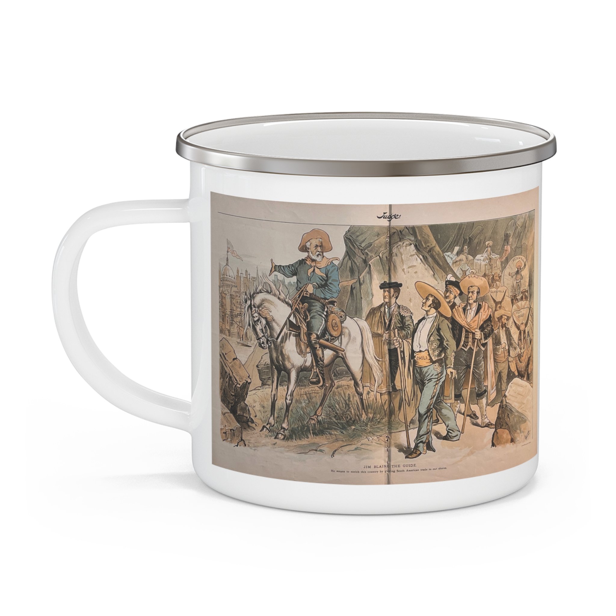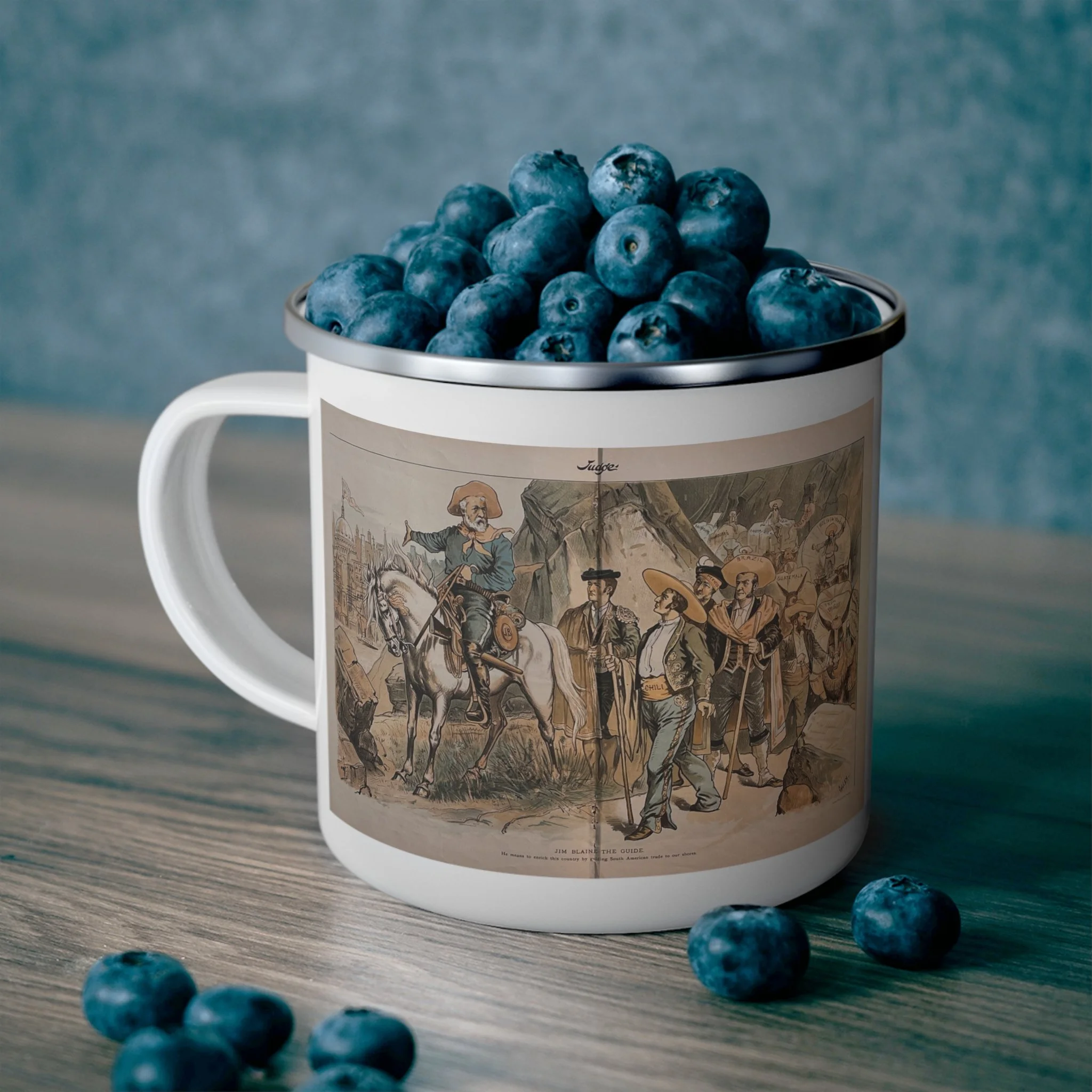 This 1889 cartoon from Judge Magazine skewers James G. Blaine’s dream of steering South America into the arms of U.S. power. Blaine—drawn here as a self-styled frontier “guide”—tries to lead the nations of Latin America toward American markets whether they want guiding or not. The artist exposes the arrogance baked into this foreign-policy fantasy: a belief that other nations exist to be directed, managed, or economically harvested at Washington’s convenience. More than a century later, the joke still lands. Imperial posturing, manufactured influence, and “we know what’s best for you” politics remain the old tricks of would-be global strongmen. This piece calls that out with the sharp humor of the Gilded Age—reminding us how easily power slides into domination when left unchecked. Authentic resistance art from 1889, revived for a new fight.