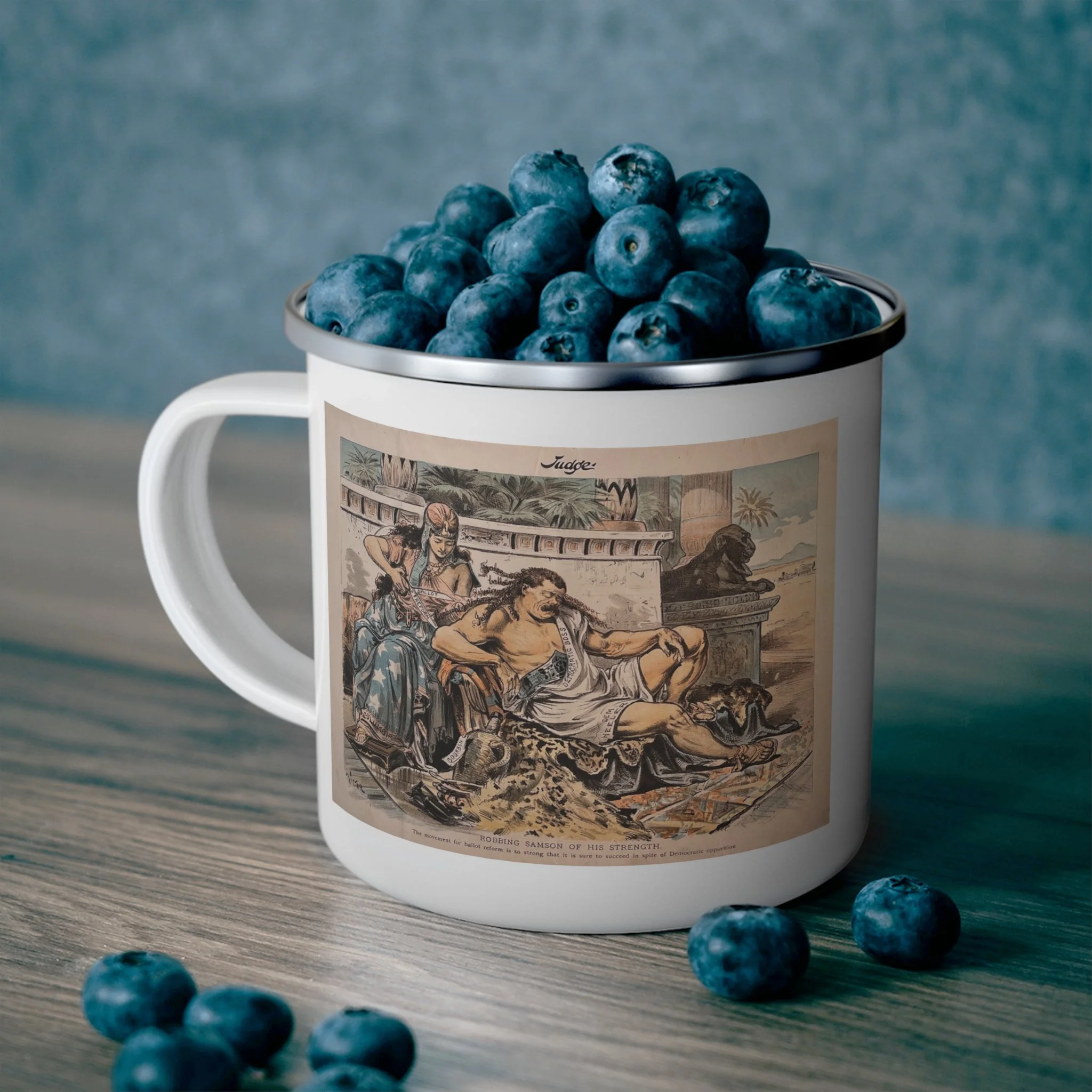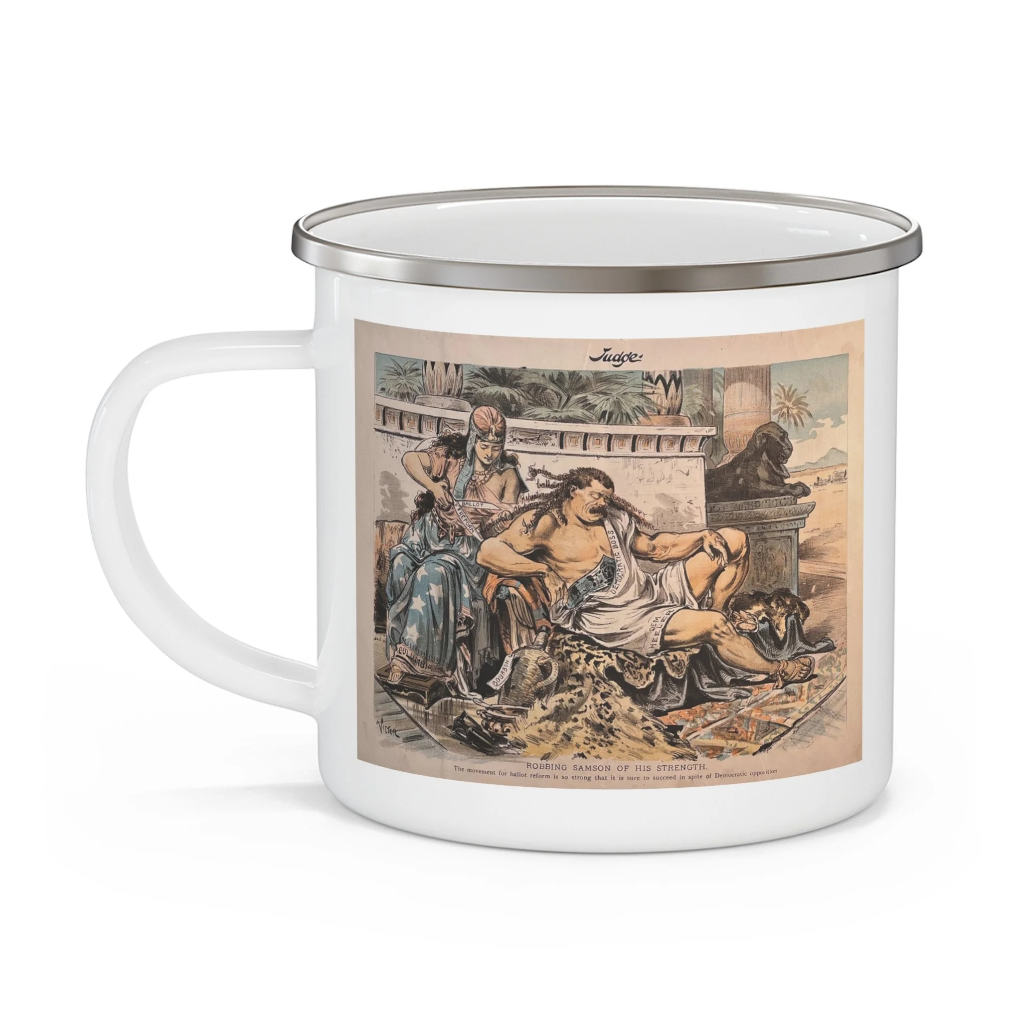 This 1891 cartoon from Judge turns the biblical story of Samson and Delilah into a battle for American democracy. Columbia — standing in for the public — quietly cuts away the “strength” of a corrupt political boss, with shears labeled Ballot Reform, Registration, and The Australian Ballot. In its own era, this image mocked the political machines that thrived on secrecy, intimidation, and rigged systems. More than a century later, the symbolism lands even harder. The tools have changed, but the threat is the same: powerful figures doing everything they can to keep the public disorganized, distracted, or asleep. And once again, the answer is the same too — protect the vote, defend the process, and cut authoritarian power down to size.