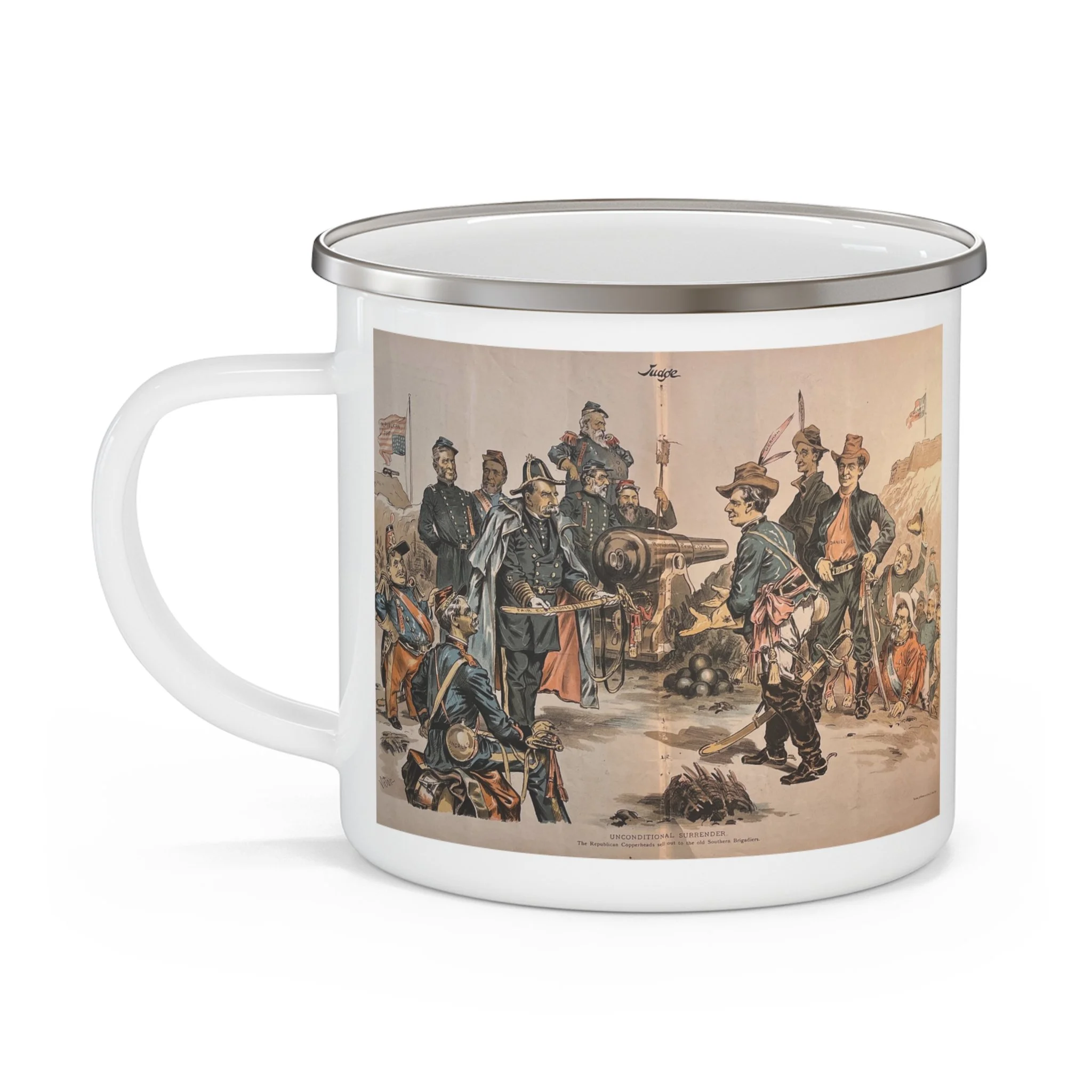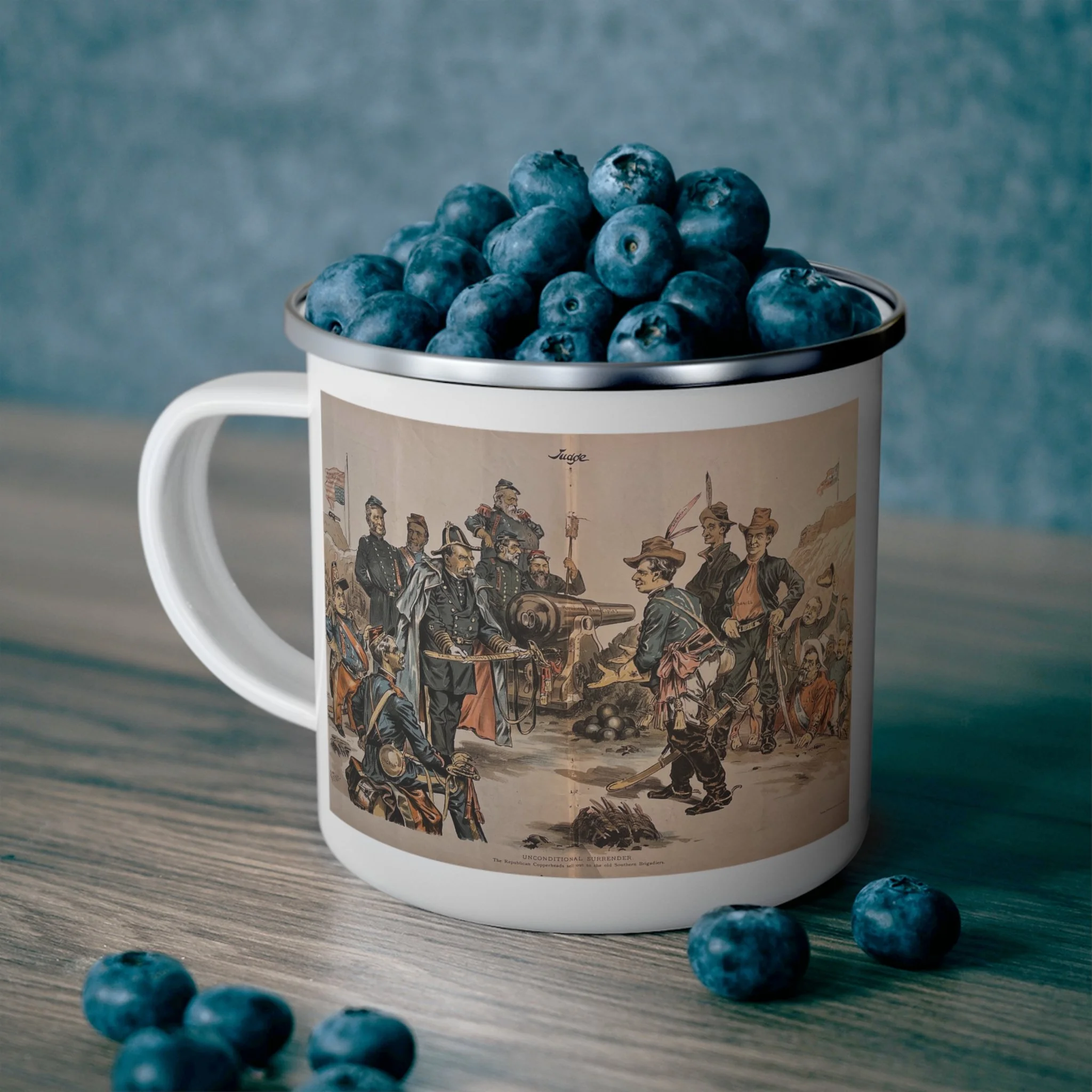 Unconditional Surrender appeared in Judge Magazine at a moment when political cowardice was becoming a national joke. Using Civil War imagery, the artist shows so-called “Republican Copperheads” handing themselves over to old Confederate brigadiers — a sharp critique of leaders who claim loyalty to the Union while enabling its enemies. The point was clear then, and remains painfully clear now: authoritarian movements thrive when politicians surrender instead of standing up. This is resistance art with teeth. Judge was warning that appeasement isn’t compromise — it’s complicity.