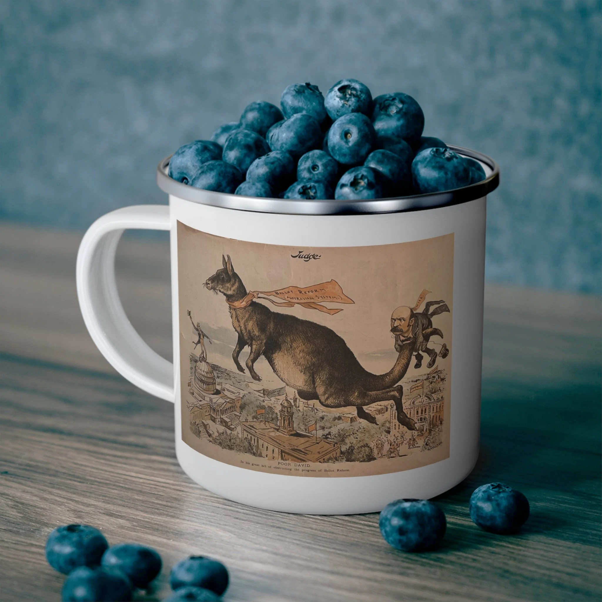 This 1891 Judge illustration exposes a problem as old as American politics: leaders who talk endlessly about “reform” while doing nothing to improve the lives of ordinary people. In the scene, two exhausted farmers stand ankle-deep in discarded “reform” speeches, campaign promises, and empty policy scrolls, while the Capitol dome heckles in the distance. Even Congress is tired of the grift. A century later, the pattern hasn’t changed. Today’s bad-faith politicians — especially within the modern GOP — still use “reform” as a slogan to justify voter suppression, deregulation, and attacks on democratic institutions. This piece lands as a reminder that performative politics is a tool of authoritarianism, and that real democracy requires more than speeches: it requires accountability.