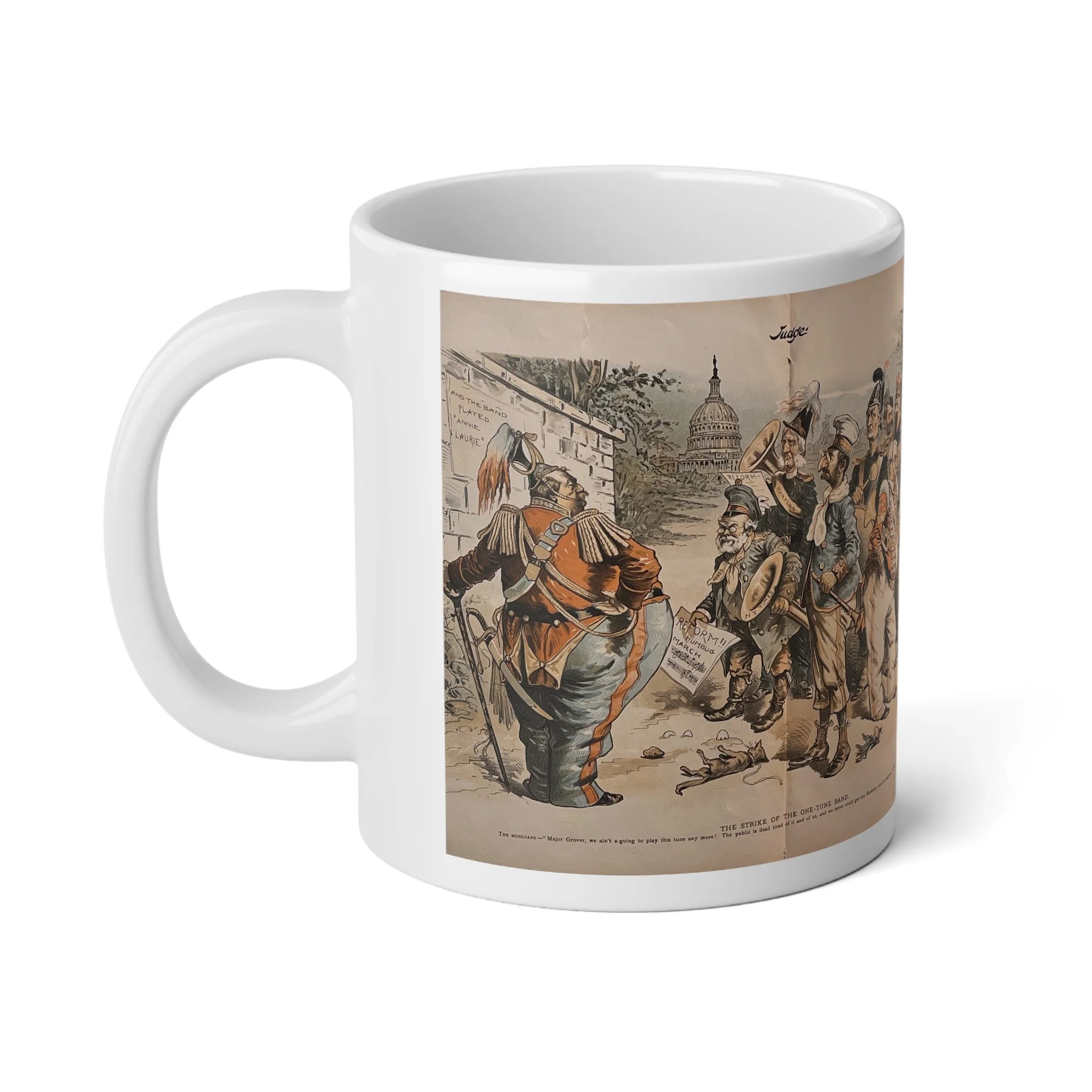 In this 1891 Judge cartoon, a military-style brass band refuses to keep playing the same tired tune for their blustering commander. The musicians are done, the public is done, and the leader is furious that no one wants his one-note message anymore. More than a century later, the scene feels painfully familiar. When political movements rely on repetition instead of ideas—and when leaders demand loyalty instead of results—the “music” always falls flat. This print calls out the danger of stagnant, authoritarian politics: the refusal to evolve, the insistence on obedience, and the belief that the public will never demand something better. A perfect piece for anyone who’s tired of propaganda loops, personality cults, and leaders who only know how to play one broken tune.