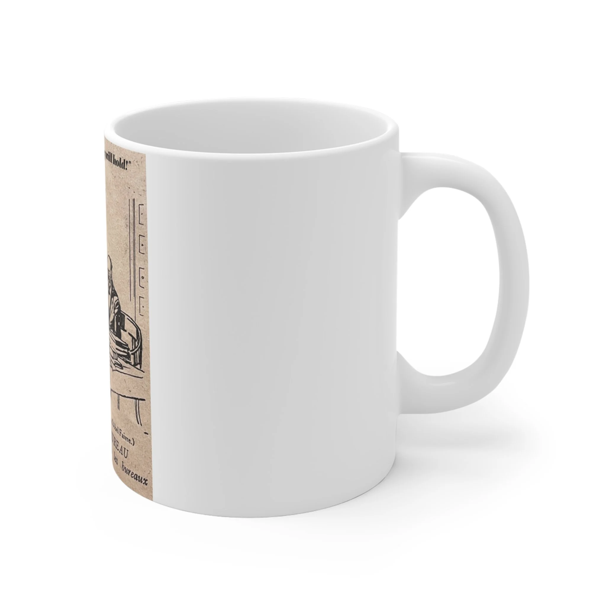The image comes from a 1916 issue of the French satirical magazine La Baïonnette. The cartoon depicts Monsieur Lebureau, buried in documents, insisting that bureaucracy will endure.