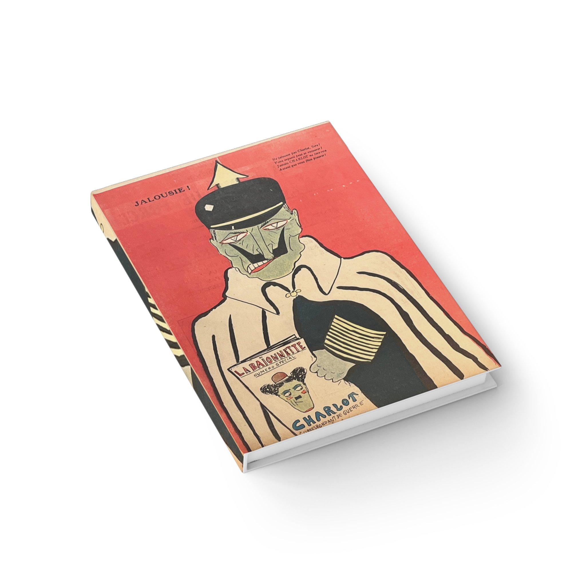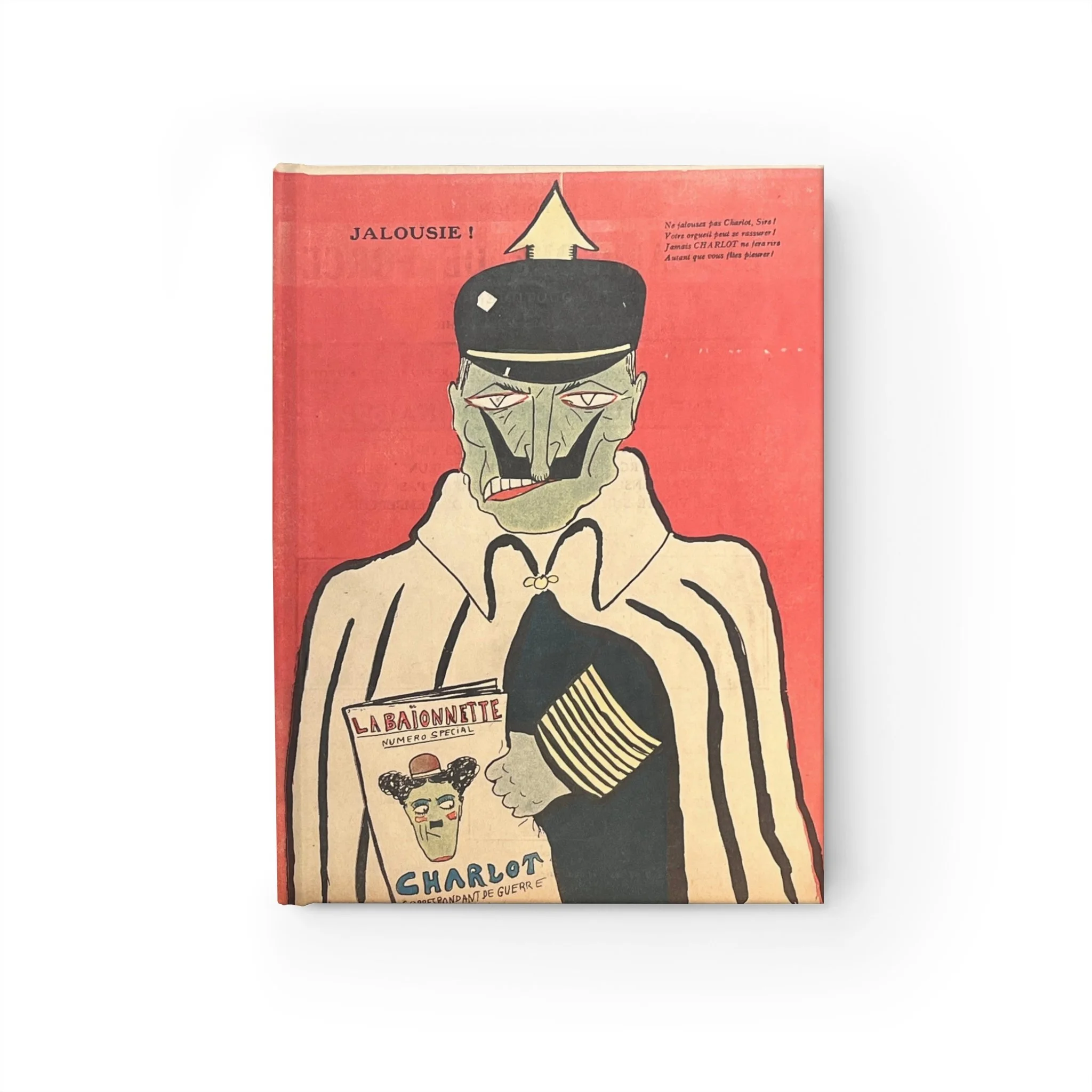 This illustration appeared in a 1917 issue of La Baïonnette and was created by Pierre-Henri Cami. Titled Jalousie!, it depicts Kaiser Wilhelm II reacting to the popularity of Charlot, using caricature to mock imperial vanity and fragility during the First World War.
